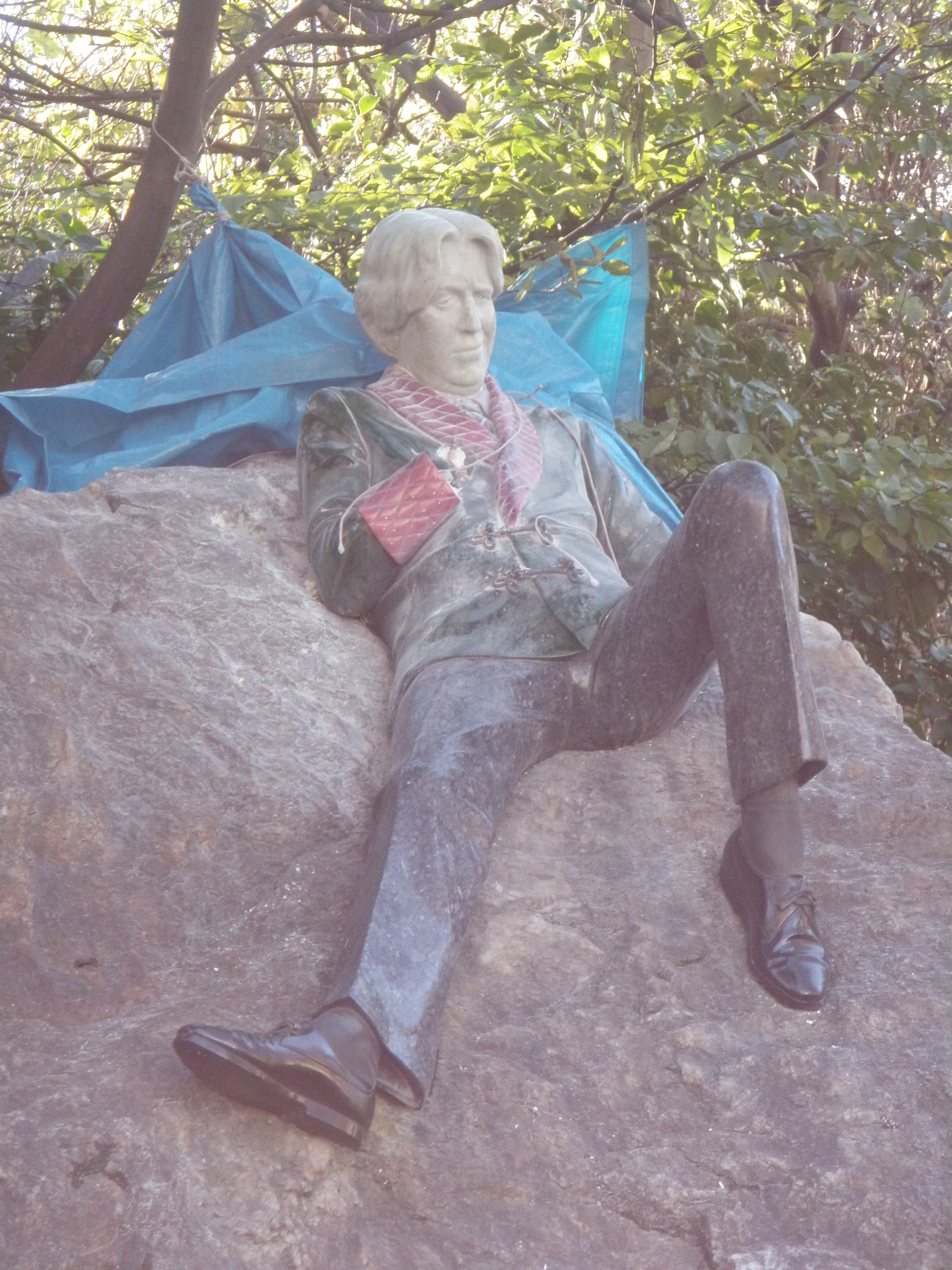 Segui o caminho até a Marrion Square passando pela National Library of Ireland e National Museum of Ireland. É na Marrion Square que fica o War Memorial e também um monumento (que estava em reforma) ao famoso escritor irlandês Oscar Wilde. Não por coincidência, a casa dele fica bem em frente a praça.