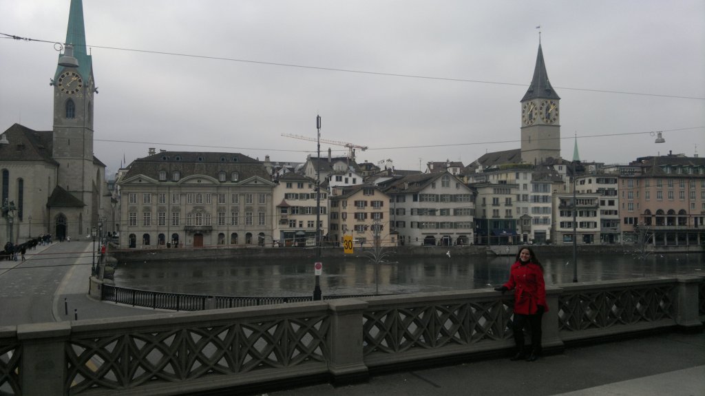No terceiro dia, acordei e fui conhecer o centro de Zurique e que lugar maravilhoso. O tempo estava nublado e bem frio mas não me impediu de nada. Primeiro lugar que fui conhecer foi a Grossmünster que dá para subir até o topo dela e ter uma vista linda da cidade.