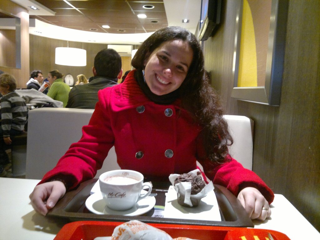 Na hora que a fominha bateu acabei comendo no Mc Donald´s porque lá tudo é bem caro – bem caro! Achei bem interessante que quase na frente tinha uma cabide telefônica super moderna – ela fecha automático e toca música ambiente além de ser bem quentinha.
