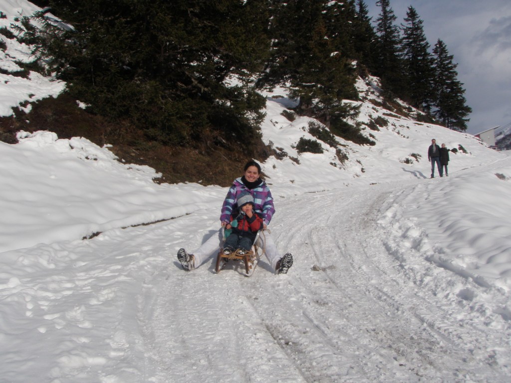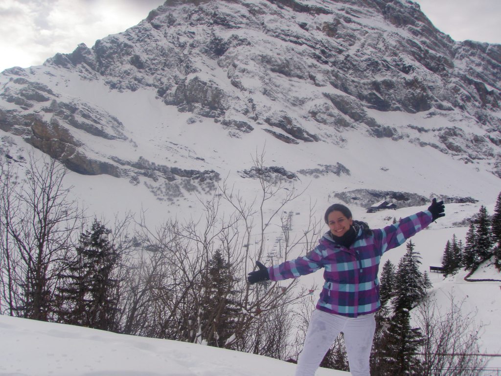 No dia seguinte acordamos cedo e passamos o dia na estação de ski Titlis – cerca de 2 horas de Zurich e foi muito bacana ver tudo isso de neve – afinal estávamos no inverno. Pegamos o lift até uma parte e passamos a tarde ali brincando de descer com o snow slide e fazendo guerra de bolinha de neve – muito divertido, amei!!! Foi a primeira vez que vi tanta neve assim. No caminho de volta passamos em uma montanha de carro que ficava mais alto que as nuvens, muito incrível.