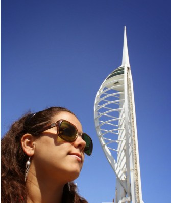 No passeio passamos em frente da famosa Spinnaker Tower, uma torre de 170 metros de altura (nível do mar) que simboliza as velas de um barco quando abertas. Pode-se subir no observatório e lá em cima ter a vista de 360° da cidade, mas deixamos para uma próxima visita.