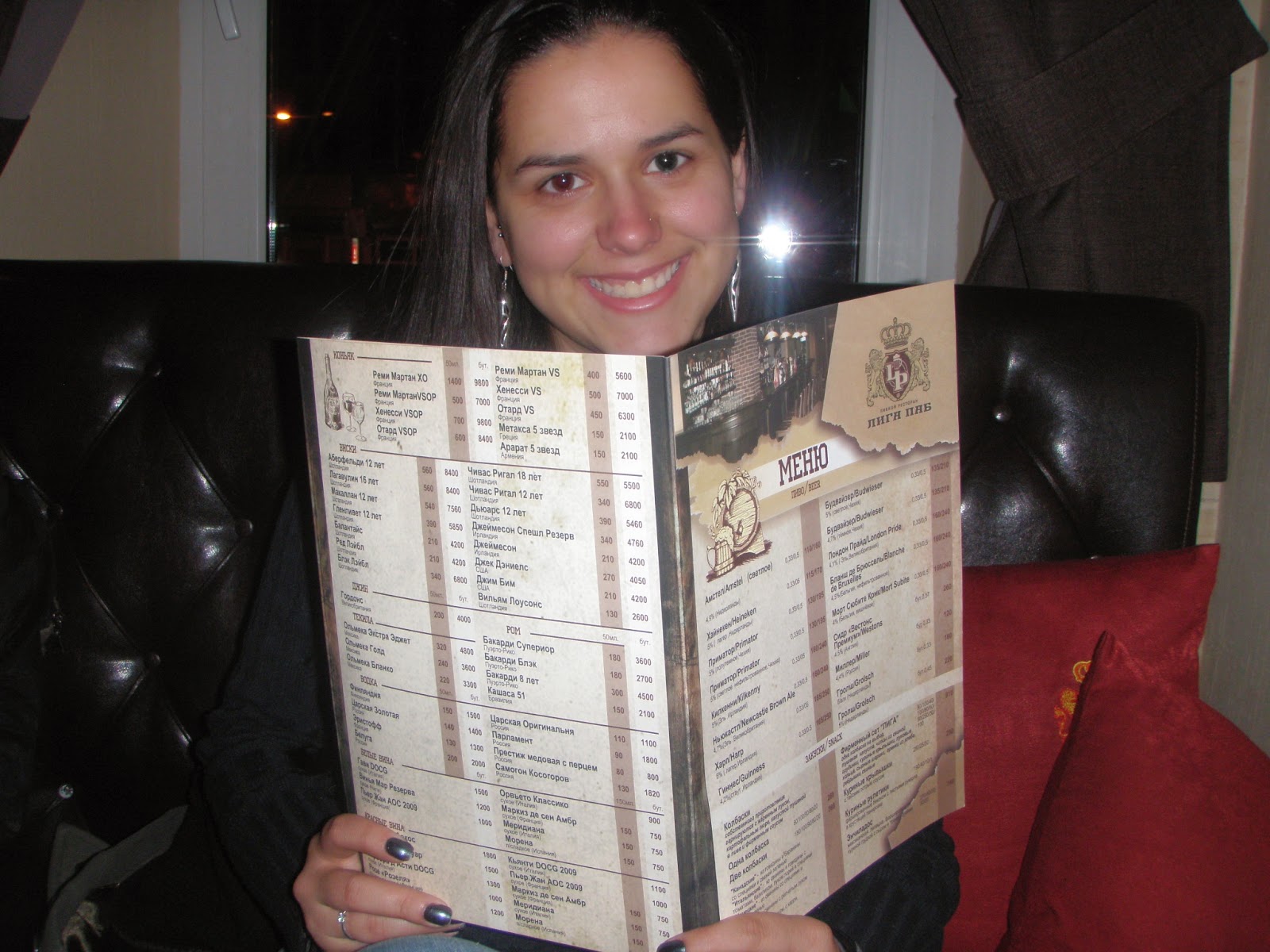 Assim que chegamos lá já encontrei o Rodrigo e a Cíntia e fomos dar uma volta para beber vodka comer. Saímos sem rumo por ali perto do hostel mesmo já que ele é super bem localizado e achamos um bar chamado Liga Bar que parecia legal. Foi difícil escolher qualquer coisa já que o menu estava todo em russo mas conseguimos e aproveitamos para degustar a Parliament, uma vodka local.