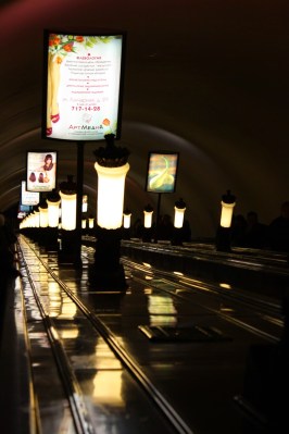 Acordamos cedo e fomos dar uma volta, escolhemos fazer o que fosse mais longe e ir voltando sentido hostel. O metrô lá é incrível, super antigo, escadas rolantes sem fim, luminárias estilosas com direito a música russa e tudo mais – até o “ticket” também é super retrô, compra-se moedinhas para inserir na catraca.
