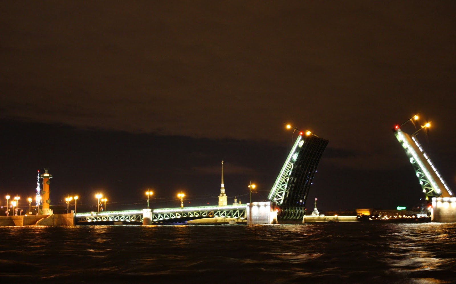 A vodka nos uniu a mais um casal que estava no hostel, Renata e Victor e passamos a noite bebendo como os russos – shots puros de vodka. Já bêbados, decidimos dar uma volta e a recepcionista do hostel nos recomendou um passeio de barco que saía a 1h30 da manhã pois nesse horário todas as pontes que ligam o norte ao sul se abrem para os barcos passarem. OK, foi a nossa opção para a noite. Levamos mais algumas bebidas e lá fomos nós para um passeio na madrugada russa num barco sem banheiro no maior frio. Hahaha. Só posso dizer que foi divertido e que essa noite rendeu história!