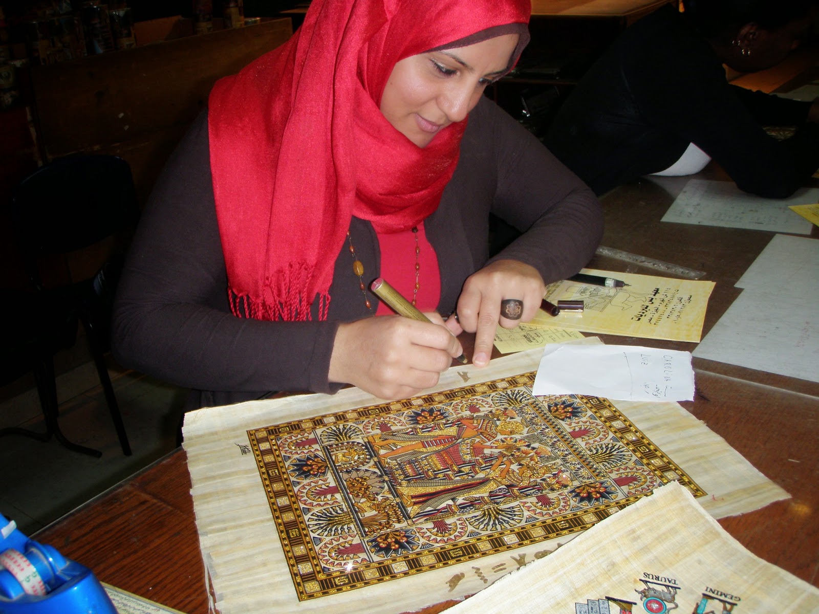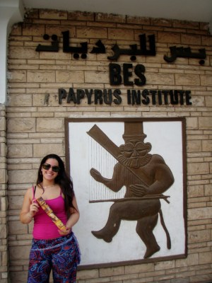 De lá seguimos para uma Papyrus Store, loja que vende e até hoje utiliza o papiro como papel. Antigamente eles utilizavam a planta papiro para escrever o que precisavam em hieróglifos. A planta se for bem apertada e seca fica realmente dura como uma folha de papel. Compramos dois, um que representa a família – em hieróglifos e outro que são os zodíacos.