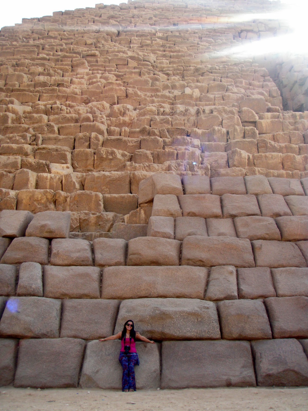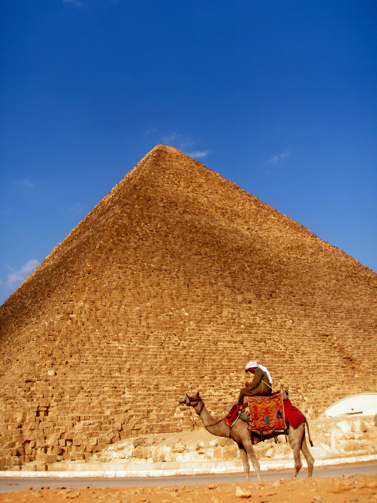 Mas foi só chegar bem perto dela que meus olhos encheram de lágrima, não acreditava aquilo que estava vendo, fiquei besta. Cada uma das pedras, cada detalhe…. Não sei descrever essa sensação! As pedras são simplesmente enormes, fico imaginando o trabalho que deu para construí-las. A única das 7 Maravilhas do Mundo Antigo ainda existente é a Great Pyramid of Giza e ao lado dela tem mais duas menores e outras só em ruínas.