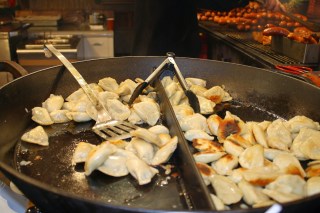 No caminho de volta para a Main Square passei pelo Wawel Cathedral and Castle. Chegando lá aproveitei para comer uma das comidas típicas polonesas nas barraquinhas do Christmas Market. Eu optei por Pierogi com legumes, algo como uma massa frita com repolho e carne dentro, boa demais!