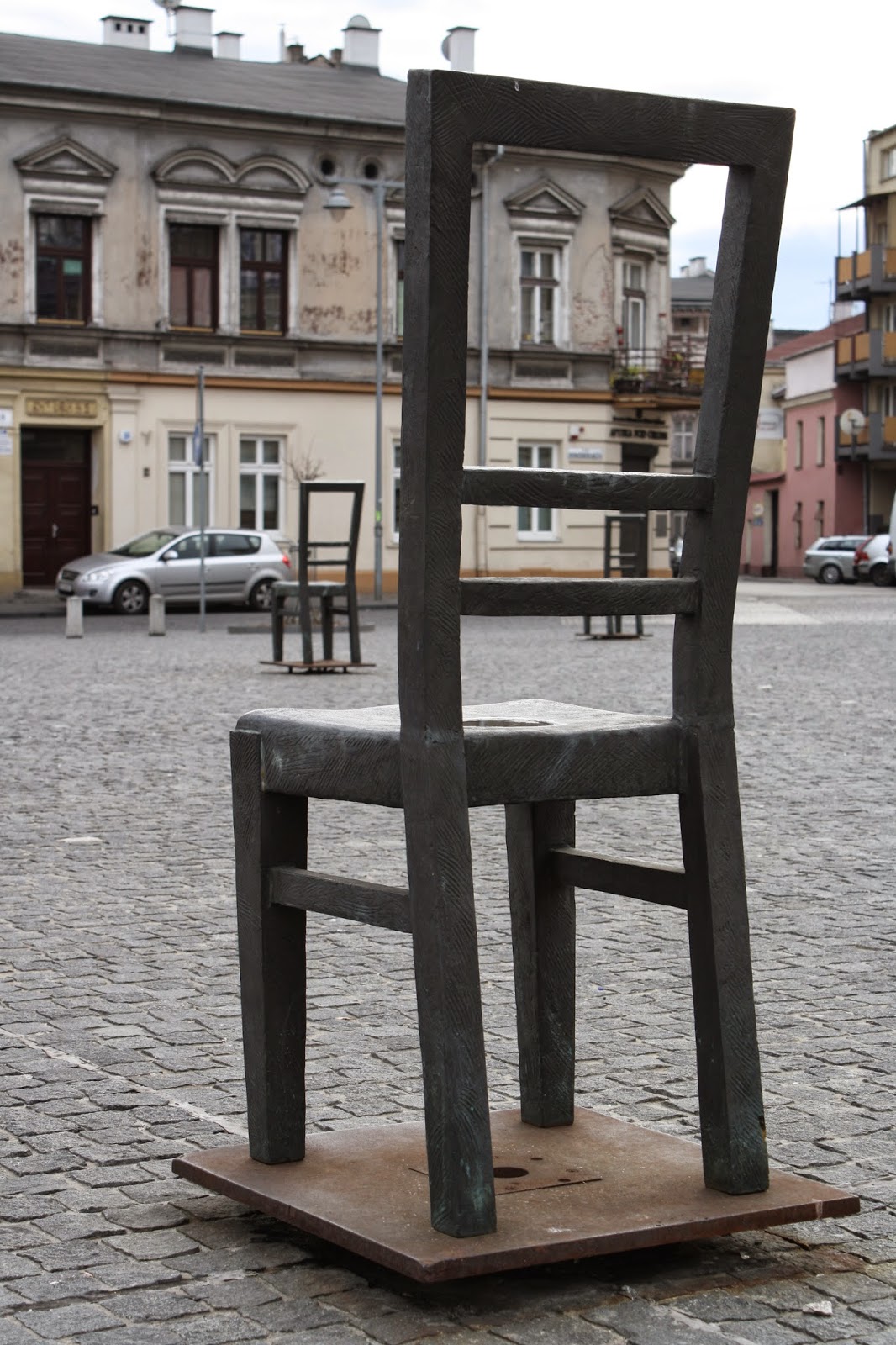Cruzei a Ojca Bernatka Bridge para chegar no Jews Memorial que fica aonde foi o Ghetto durante a ocupação alemã na Polônia na Segunda Guerra Mundial. Daqui eles foram deportados para os campos de concentração de acordo com a habilidade de trabalho e estado físico. Cada cadeira de ferro representa mil vítimas. Não preciso nem dizer o clima que é na região.