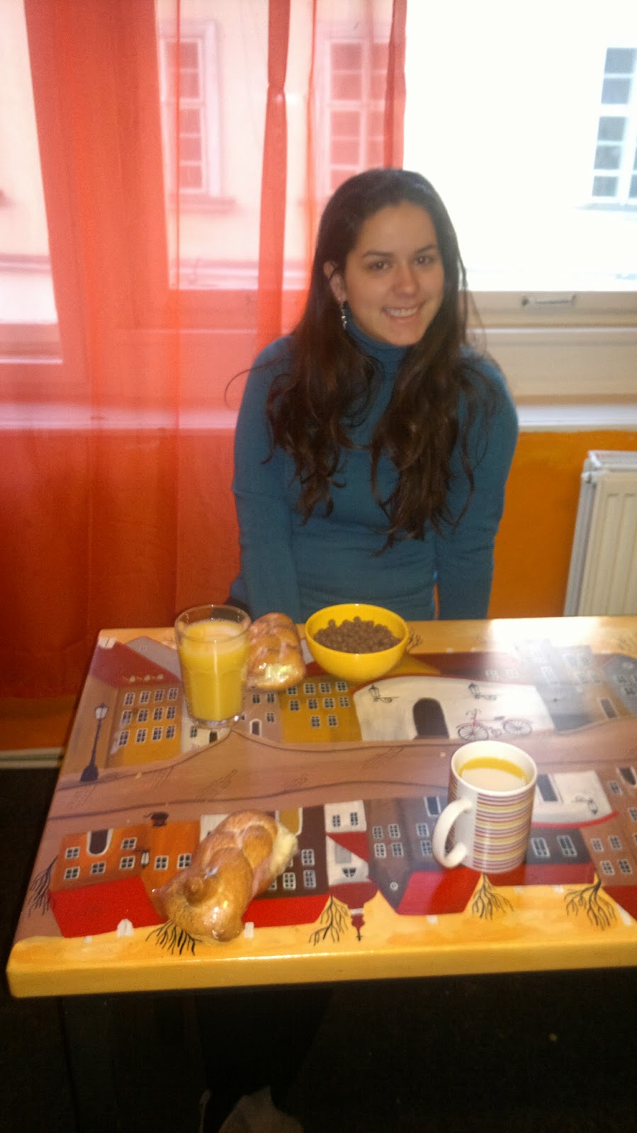 | Até a mesa era decorada no hostel |
