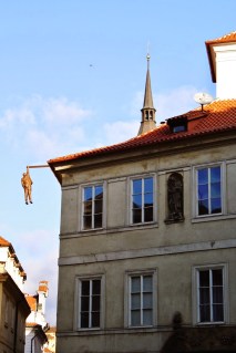 Segui até a Charles Bridge beirando o enorme Rio Vltava e a cidade é cheia de detalhes como esse homenzinho pendurado no telhado, essa placa entre outras coisinhas que me chamou a atenção, por essas e outras coisas que amo Praga.