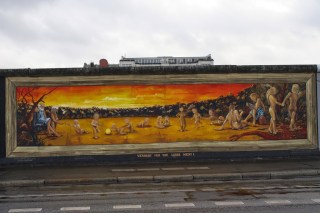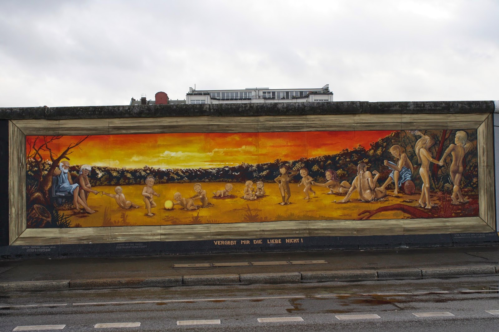 Bem alimentados fomos ver o Muro de Berlim, ou o que restou dele, e a galeria de arte (East Side Gallery) que ele virou. No caminho é possível ver o Molecule Man Sculpture, uma obra de arte de um artista americano, como disse, Berlim exala arte também. Escolhi algumas das pinturas que mais me agradou, ou me chocou. Veja quais abaixo: