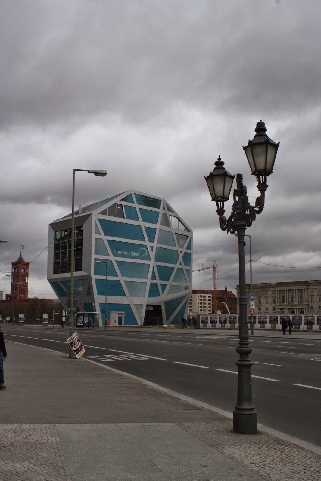 Bem ao lado de toda esses prédios antigos com arquiteturas europeias pode se ver o Humboldt Box, um prédio extremamente moderno, o contraste é enorme. Continuando a caminhada passamos em frente a Universidade que leva também o nome desse famoso explorador e geógrafo alemão.