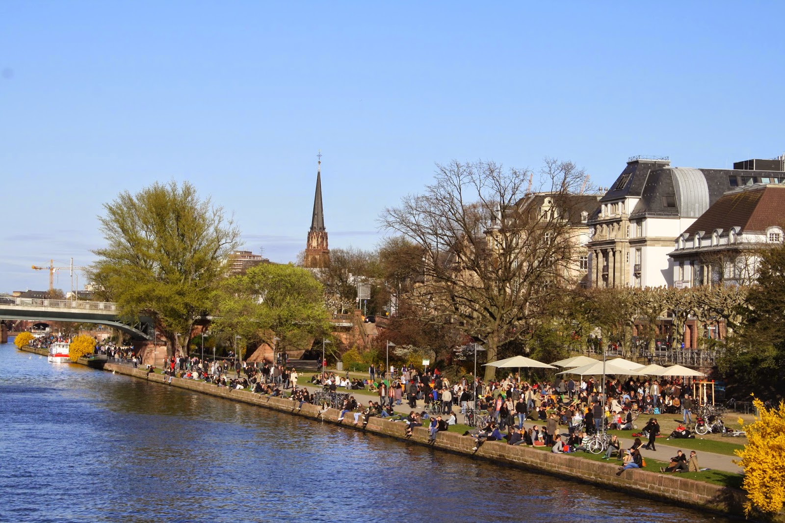 Uma das coisas que eu amo na Alemanha é o estilo de vida que as pessoas levam. Enquanto passeávamos de barco podia-se ver pessoas de todas as idades na beira do rio, fazendo picnic, tomando uma cerveja, fazendo exercícios ou simplesmente sentados conversando e aproveitando o sol.