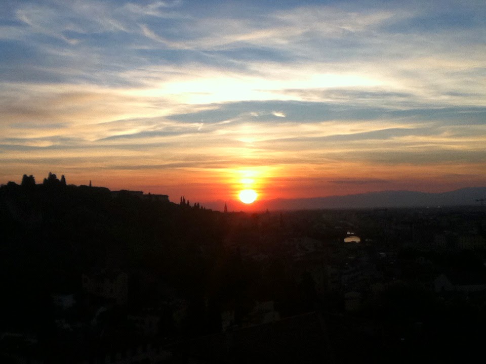 Depois de toda essa peregrinação pela cidade voltamos para o hotel para tomar um banho e sair para jantar. Fomos indicados um lugar para comer a famosa Bisteca Fiorentina chamado Tratoria Dell´Orto e ficava apenas 15 minutos caminhando do hotel. No caminho pudemos mais uma vez ver o sol se pôr, incrível como de qualquer ângulo nessa cidade as fotos ficam incríveis, um verdadeiro cartão postal.