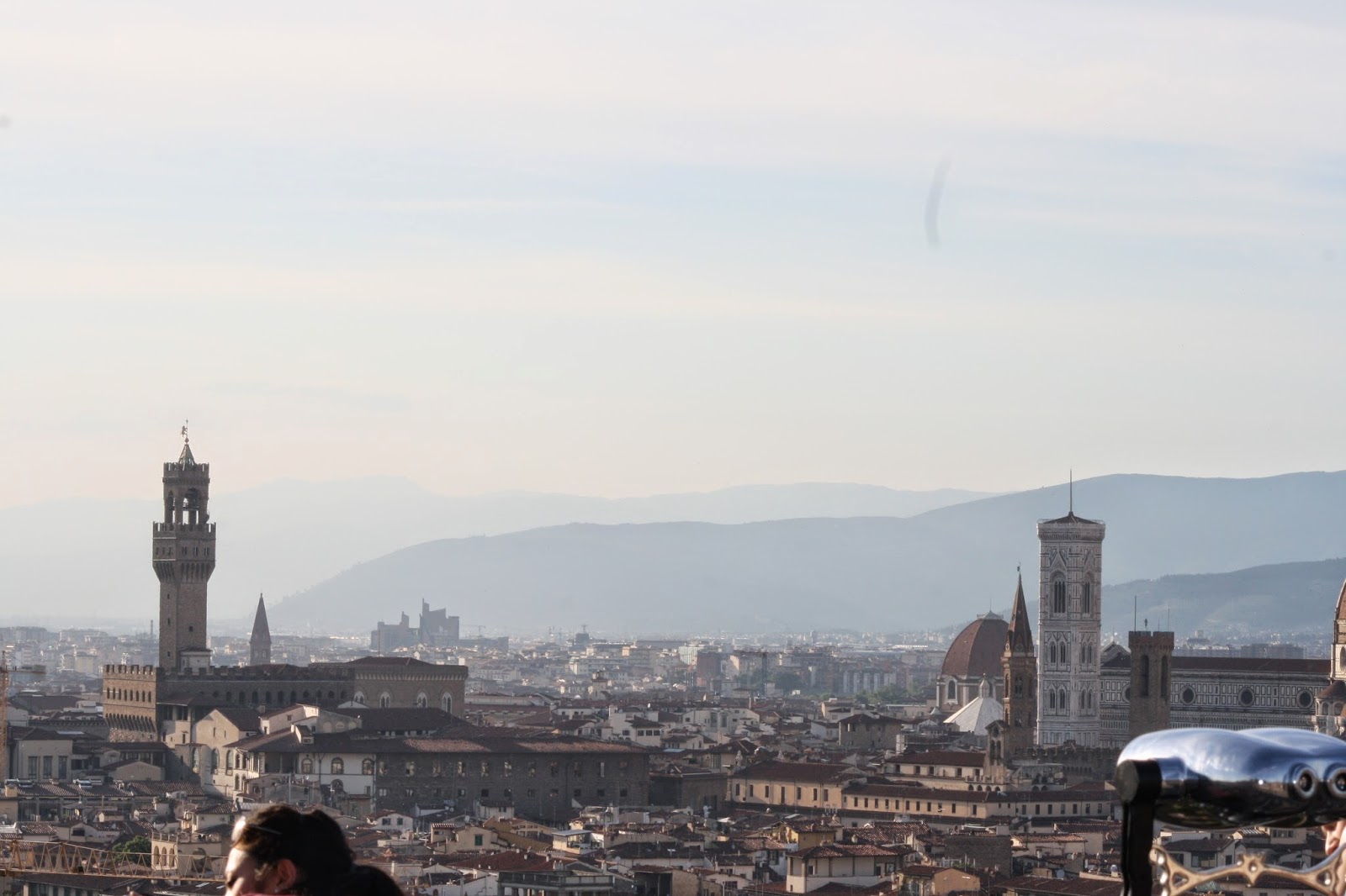 É uma “pequena” subida de uns 20 minutos para se chegar na Piazzale Michelangelo mas posso garantir que vale a pena cada gota de suor, a vista lá de cima é incrível. Sentamos em uma escadaria que estava lotada com um misto de locais e turistas para ouvir uma italiana cantar enquanto o sol se punha atrás dela. Quando finalmente o sol tinha sumido por completo, todos levantaram e aplaudiram esse espetacular espetáculo da natureza. Achei lindo darem valor para isso e mágico também, uma energia super boa!