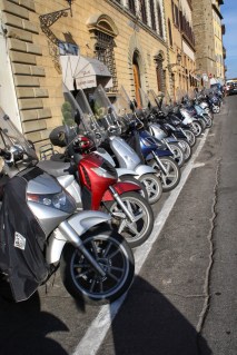 Saímos em direção ao centro beirando o Rio Arno e o dia estava espetacular para caminhar. O cara do hotel nos recomendou de subir até a Piazzale Michelangelo para ver o pôr do sol e esse foi nosso destino final. No caminho passamos pela famosa Ponte Vecchio que até hoje abriga inúmeras lojas como na época que foi construída apesar de hoje ser mais voltada para jóias e souvenirs. Fiquei impressionada com a quantidade de scooters e vespas que tem na cidade, além das bicicletas.