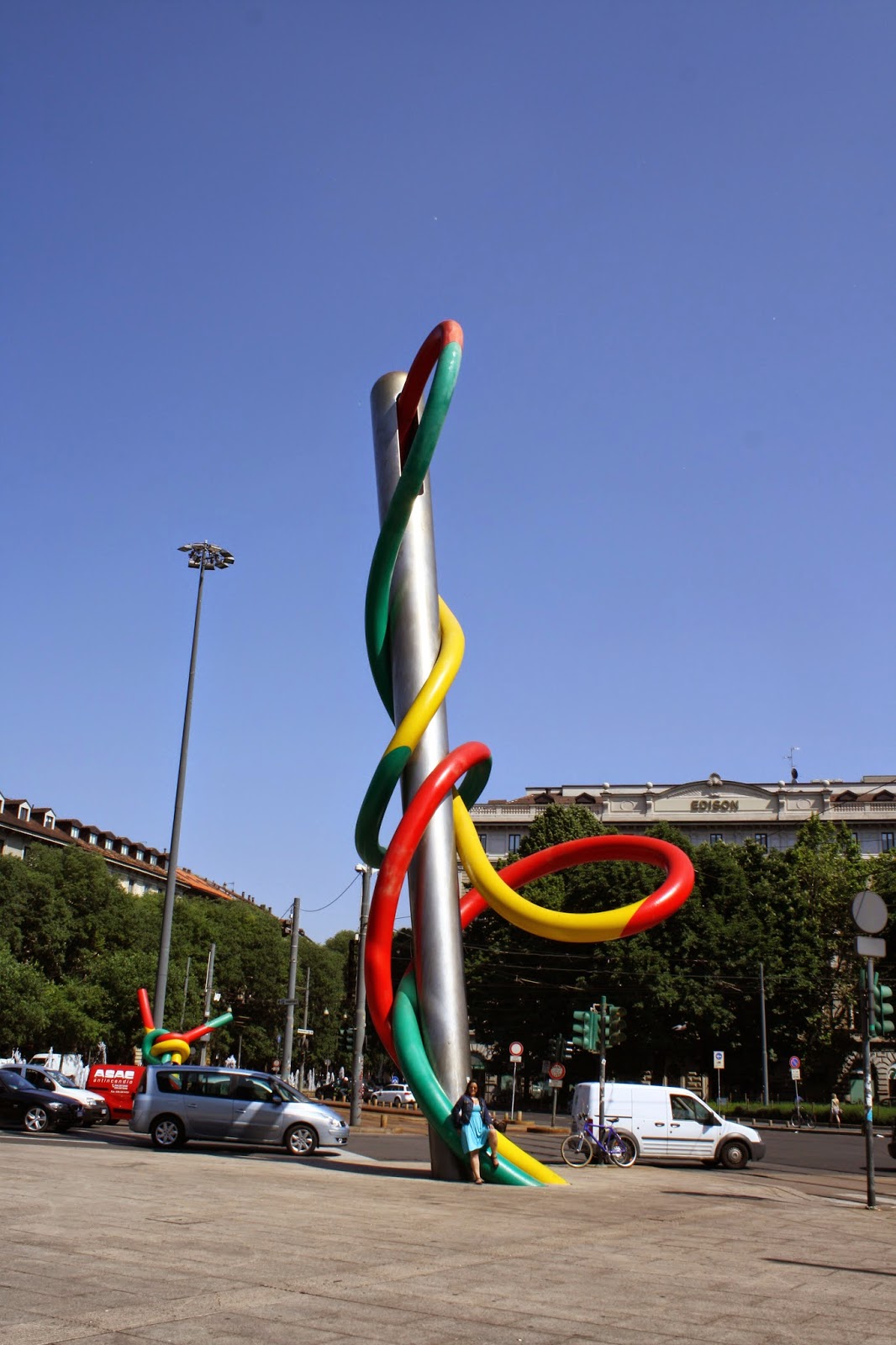 O Castelo Sforza é definitivamente um lugar para fazer um picnic e passar uma tarde curtindo o lugar, muito gostoso e acolhedor apesar do seu enorme tamanho. Ficamos conversando e descansando ali antes de seguir ao último ponto: Ago, filo e nodo – uma escultura colocada em frente a estação de Cadorna depois da reforma representando as 3 cores das linhas do metrô e também o lado fashion da cidade.