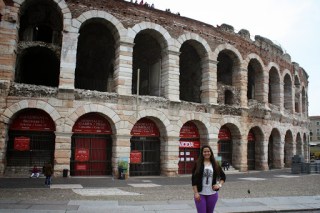 Cheguei em Verona e o primeiro lugar que eu queria conhecer era a Casa da Giulietta. No caminho passei pela Arena e ia ter show de uma banda italiana então já dava para ver a movimentação. Deve ser muito legal ir num show em um lugar tão histórico e antigo.