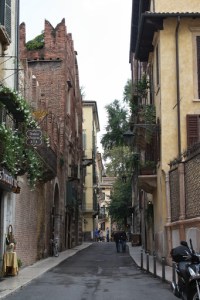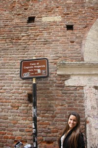Desci e fui andando sem rumo, sem mapa, só passeando e de repente parei em uma rua que me chamou a atenção. Não sei explicar, me deu um estalo, uma sensação boa ao cruzar aquela rua deserta e serena. Caminhei por ela e descobri que era aonde Romeo morava. Não tem nada de turístico lá, só mesmo a placa indicando. Achei curioso ter me chamado a atenção uma “rua qualquer”, enfim.