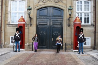 Quando estávamos voltando passamos novamente pela Amalienborg Palace (era por volta de meio dia) e estava acontecendo a troca da guarda, foi muito legal. A praça em volta ao palácio é redonda e tem os guardinhas todos ao redor. Eles trocam um por um e depois entra a banda para acompanhá-los. Assistimos até o final e saímos caminhando atrás deles após a cerimônia. O que achei muito diferente foi que eles saem caminhando – os guardas e a banda – por toda a cidade. Seguimos eles por cerca de 10-15 minutos e eles ainda estavam indo para algum lugar que não sei qual mas estava sendo afastado do nosso hostel e já tinhamos que voltar.