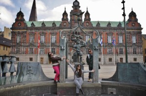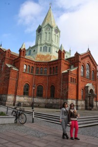 Como era domingo de manhã, tudo estava fechado então saímos sem destino, apenas caminhando para conhecer a cidade. Logo na saída da estação tinha um monumento a “Não Violência” que achei bem diferente. A cidade é bem pequenininha, arrumada e limpa. Fomos passeando e passamos pela Malmö City Hall, St Peter´s Cathedral, Carolis Kirka e cortamos pelo meio do Slottsparken para chegar até o Aq-va-kul, um lugar com piscinas aquecidas e sauna, perfeito para relaxar.