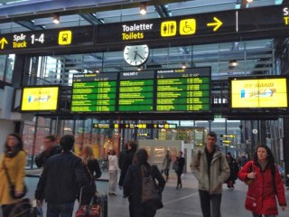 O próximo trem sairía em alguns minutos, tempo para uma admirar mais um pouquinho a bela estação central de Malmö. Enquanto esperávamos o trem, notamos na plataforma diversos quadrados passando imagens como se já estivessémos no trem, tudo para nos entreter na espera.