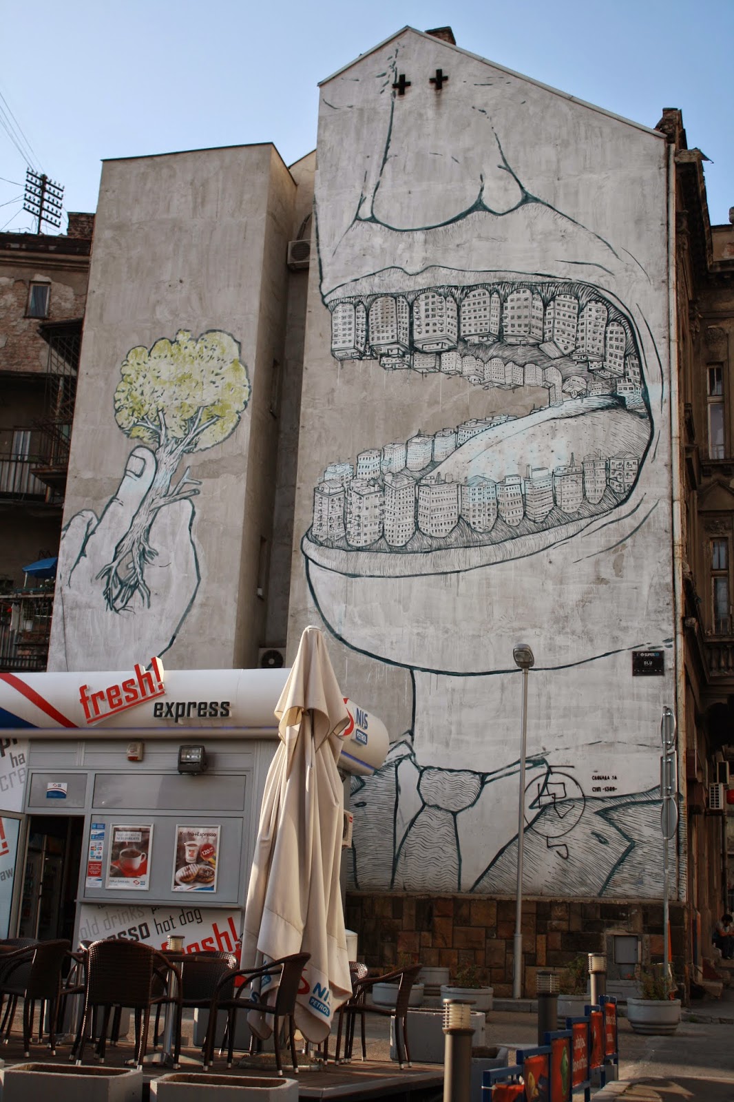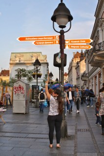 Dessa vez como estávamos em 3 e tínhamos só mais um dia para conhecer a cidade optamos por pegar um táxi, 20 minutos e estávamos no hostel. Deixamos a mala correndo e pegamos um ônibus para o centro, até dá para ir a pé, deve ser uns bons 40 minutos de caminhada mas estávamos com pouco tempo para isso. O dia estava maravilhoso, um sol de rachar, calorzinho gostoso. Descemos na ponte perto da estação principal e fomos caminhando em direção a Fortaleza. No caminho passamos pela St Nichola´s Church, muito bonita por dentro e por fora e pela Residence of Princess Ljubica, esbarramos também em bastante arte de rua que eu adoro. Achei a cidade super alto astral, um pessoal jovem, bonito, sorridente e todo mundo fala inglês.