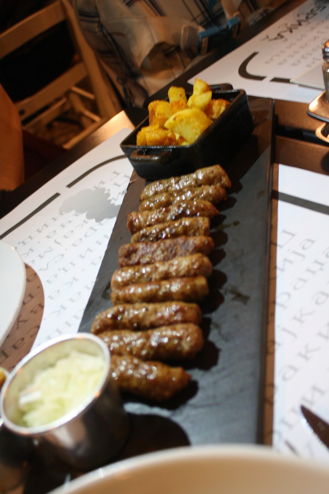 Quando descemos do ônibus ele nos mostrou a catedral e perguntou se estávamos com fome, e estávamos. Ele comentou que umas 4 quadras pra baixo tinha um restaurante servo bem rústico mas muito caro que valia a pena a visita caso estivéssemos dispostos a gastar um pouco mais. Resolvi perguntar o que seria “muito caro” quando ele mencionou que o salário mínimo na Sérvia é de 200 euros se convertido da moeda local (Serbian dinars) e ainda bem que o fiz: um jantar lá sai por volta de 10 euros por pessoa. Ele seguiu seu caminho e nos ficamos namorando a catedral recém restaurada quando a fome bateu mais alto e decidimos arriscar.