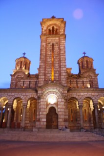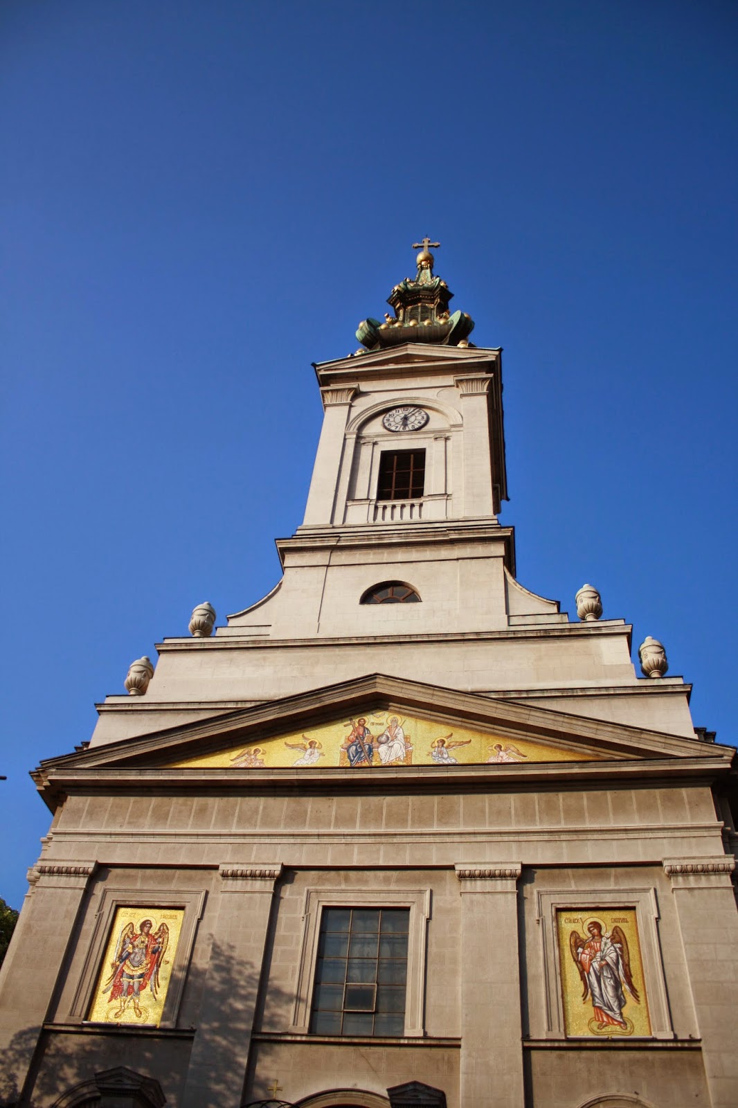 Chegamos no centro já por volta das 6 da tarde e a cidade estava lotada de gente, um pessoal jovem e bonito, uma atmosfera muito boa. Caminhamos da estação central até a Republic Square e decidimos ir ver a principal catedral da cidade: St Sava´s Cathedral no mapa parecia longe então pegamos outro ônibus e novamente não tivemos que pagar. Ficamos atentos para ver qual era o ponto que tínhamos que descer e perguntamos para a mulher que estava checando os tickets. Ela começou a explicar mas um rapaz chamado Aleksandro a interrompeu e disse que iria descer no ponto da catedral e poderia nos levar até lá. No restante do caminho recebemos uma verdadeira aula de história contada por ninguém menos que um local, muito bacana essa experiência.