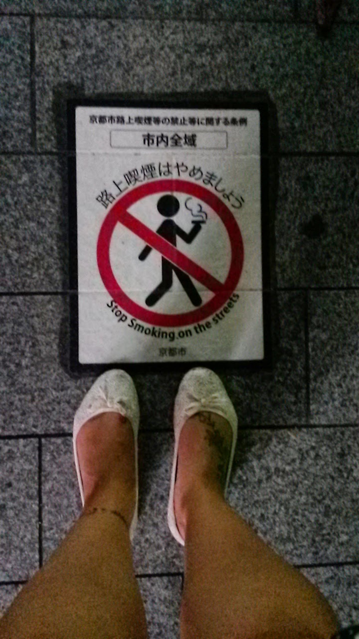 Chegamos a noite em Kyoto depois de 1h30 de viagem e escolhemos o Guest House Kyoto para dormir. Deixamos as coisas no hostel e fomos para o bairro de Pontocho procurar algo para comer e beber. O hostel é bem localizado mas como estávamos de carro decidimos usufruir desse benefício. Adorei que não se pode fumar nas ruas por lá.