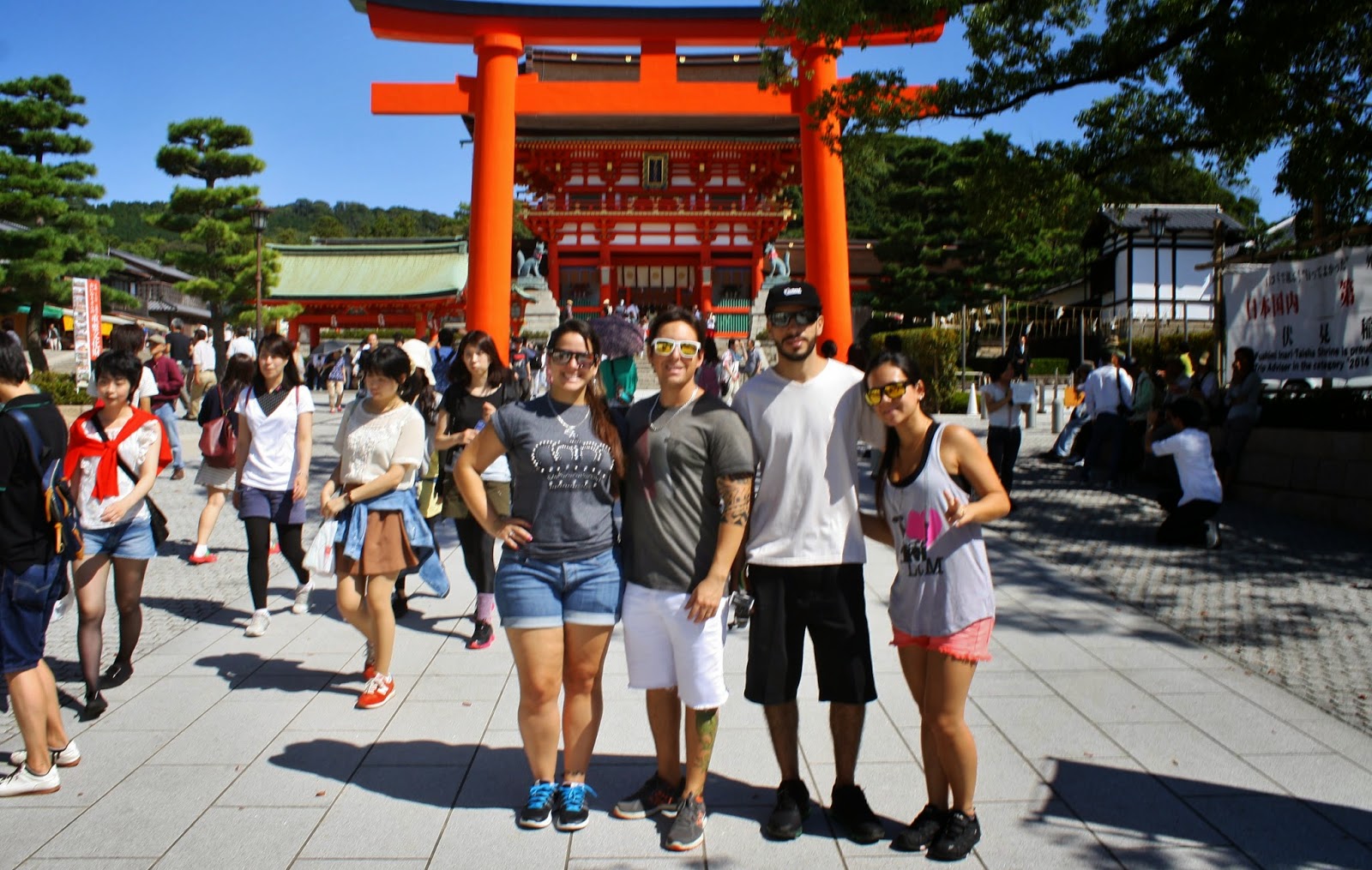 No dia seguinte acordamos cedo para aproveitar o máximo da cidade e fomos direto para a principal atração: Fushima Inari Taisha. É uma trilha de mais de 4km de percurso com milhares de Tori (aqueles portões para entrar nos santuários) no caminho, cada um com o nome da empresa que o patrocina.