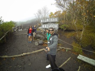 Saimos cedinho de casa para poder aproveitar o dia e depois de 4hs chegamos no pé do Monte Fuji. Infelizmente o tempo estava um pouco nublado e não conseguimos vê-lo então decidimos subi-lo. E sobe, sobe, sobe…. subimos 2400 metros de altitude, o limite máximo que dá pra chegar de carro.