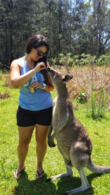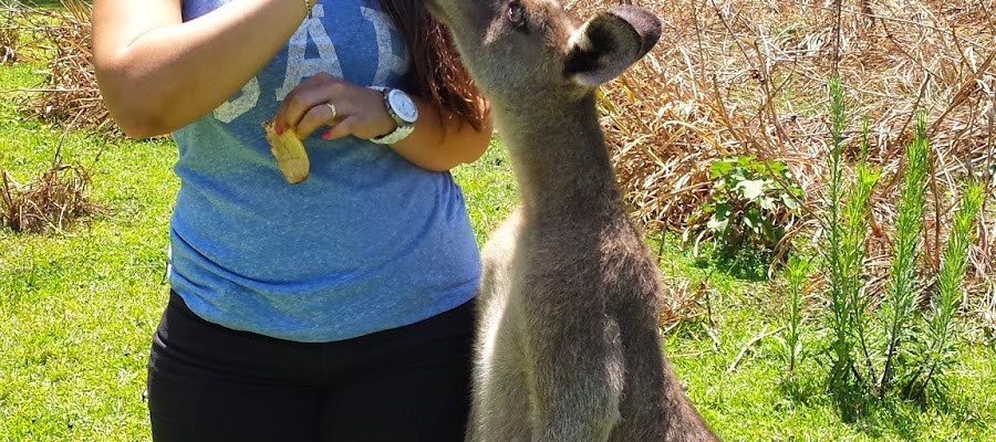 Os cangurus adoram um carinho nas costas e principalmente no peito e pescoço, se derretem todo. Tinha um rapaz que trabalha no parque que nos disse para dar apenas frutas para eles e não pão porque faz mal, então seguimos o que ele falou. Ficamos uma horinha ali alimentado e fazendo carinho neles, aproveitamos para fazer nosso lanche também e seguimos viagem para Port Stephens.
