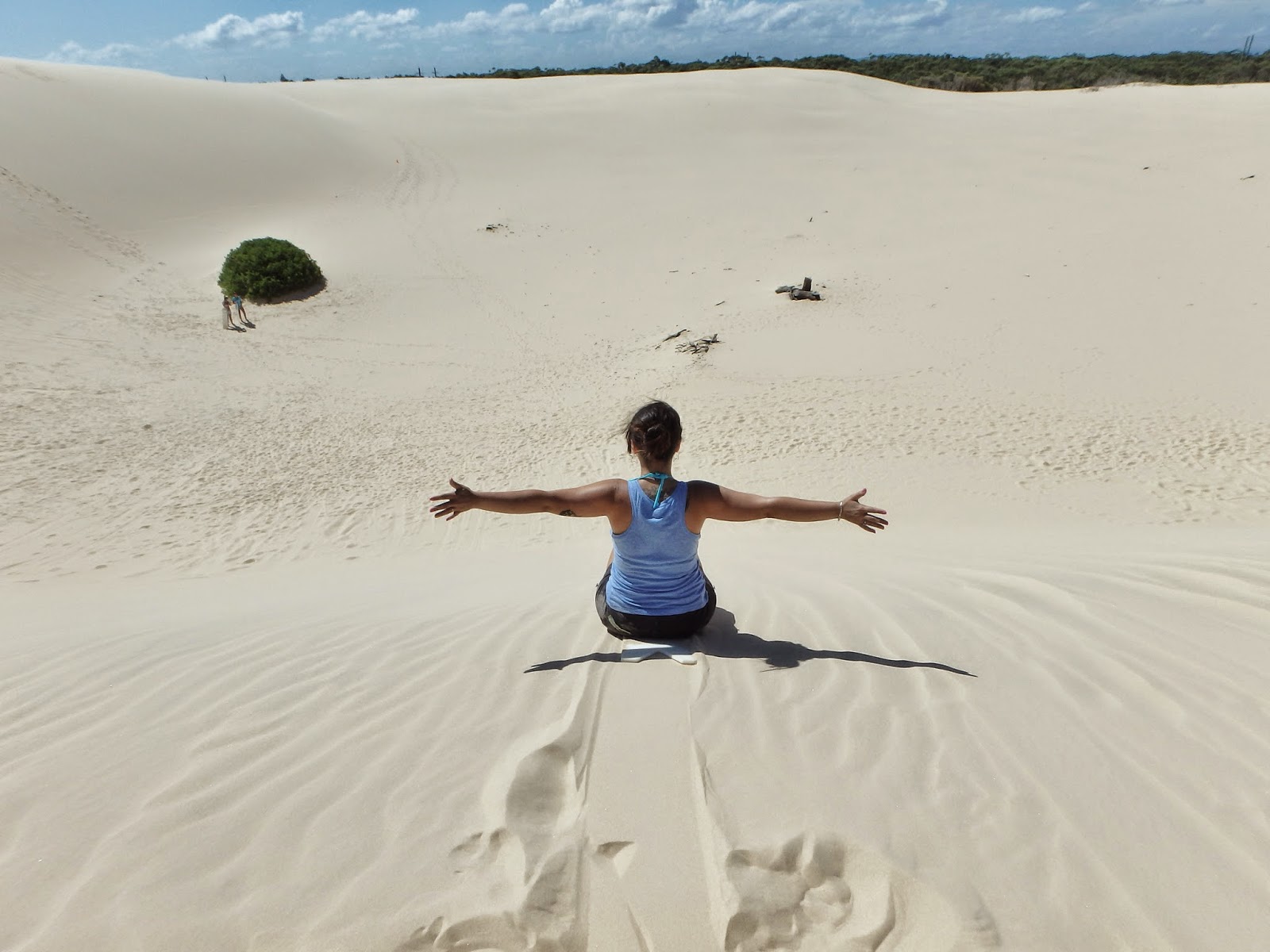 Foi super divertido, consegui até descer em pé no final. Descer é moleza, o difícil e cansativo é ficar subindo a duna embaixo de um sol de 30° mas vale super a pena. Ficamos umas boas horas nos divertindo por lá e voltamos já no fim de tarde para a praia. Eu tinha areia por todos os cantos, lá nas dunas venta demais então o banho de mar foi perfeito, tava meio gelado, melhor ainda.