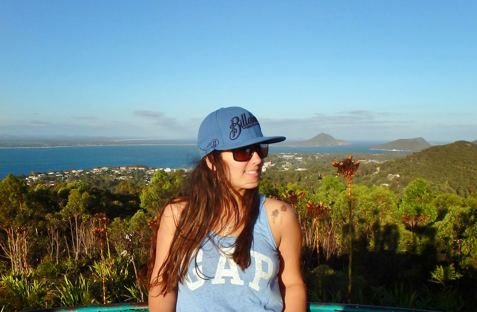 De ducha tomada e barriga meio cheia pegamos o carro para subir no Gan Gan Lookout, um mirante que tem uma vista linda de Port Stephens e fica cerca de 10 minutos da onde estávamos. Super bonito lá de cima! Deixamos o carro lá e subimos mais um pouco para ver o outro lado também. Ouvi dizer que o Tomaree Lookout tem uma vista ainda mais linda, mas para esse é preciso de mais tempo pois só dá para chegar através de trilha. Fica pra próxima!