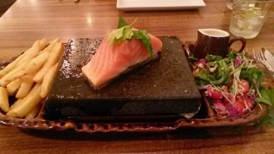 O lugar era demais, super bonitinho, todo estiloso, gostei muito. O nome é Cataracts on Paterson. Pedi um salmão cozido na pedra vulcânica a 400 graus por mim mesma. Achei a idéia sensacional e estava uma delícia! Para acompanhar pedi um vinho local super gostoso já que não deu tempo de parar nas vinícolas do caminho. E para fechar a noite, pedi um chocolate fondant com recheio de chocolate Lindt (vulgo petit gateau no Brasil) e veio com velinhas para mim pois falei que era meu aniversário 🙂