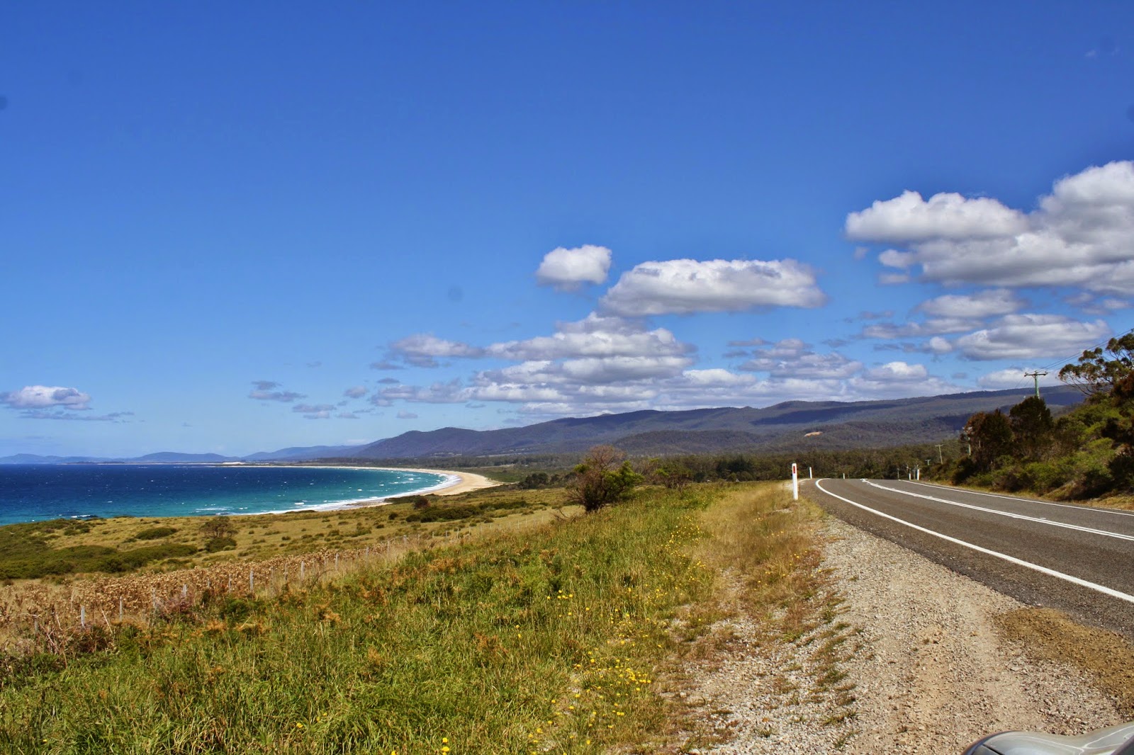 A estrada é linda demais, você vai todo o tempo beirando a costa e também tem várias placas para tomar cuidado com os bichinhos que a cruzam a noite quando saem para se alimentar. Infelizmente vi muitos, muitos mesmo, bichinhos mortos no caminho. A região próxima de Bicheno também é famosa pelas diversas vinícolas, mais um motivo para pernoitar por lá.