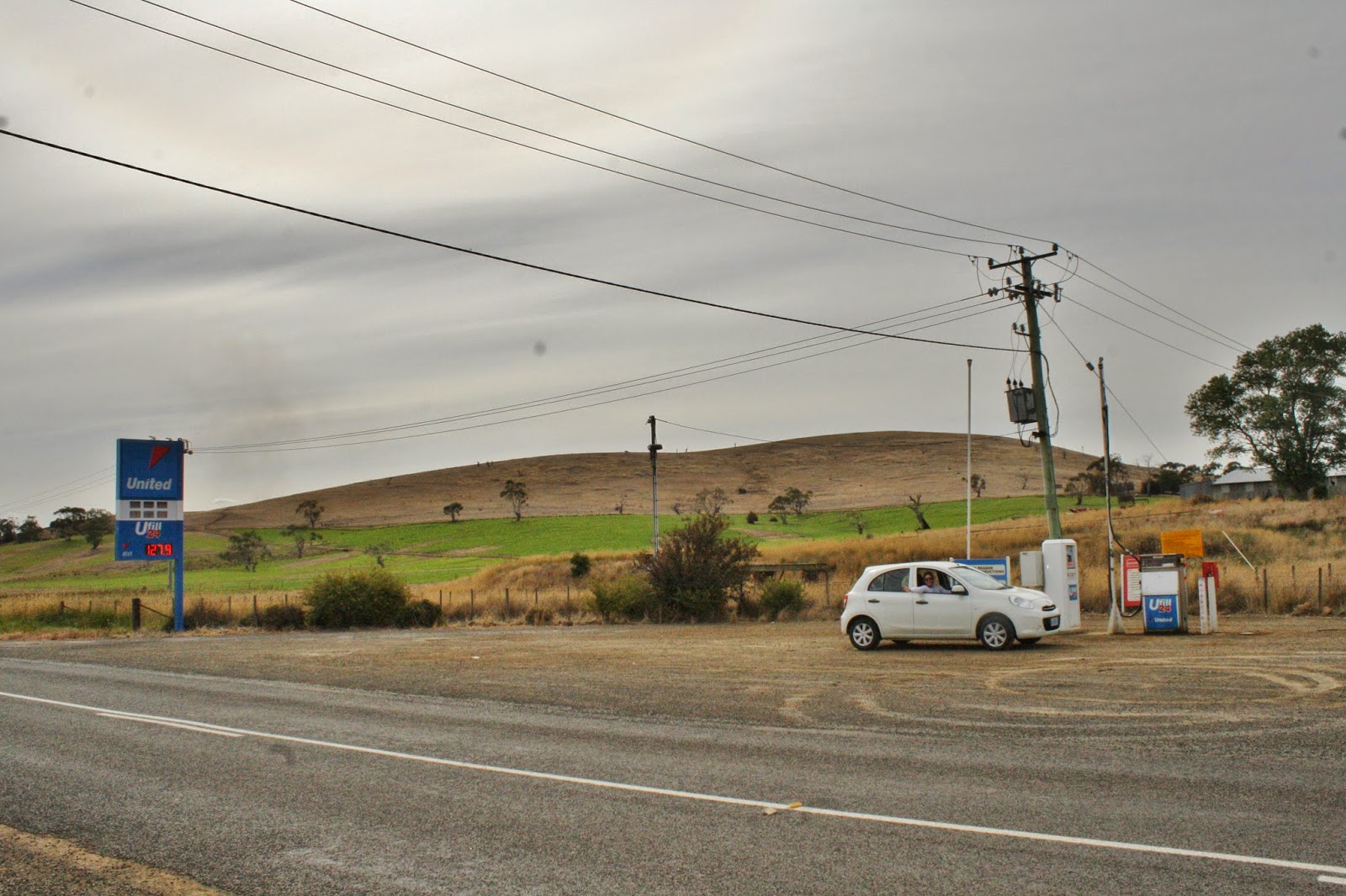 Acordamos cedo e nosso café da manhã foi umas bolachas que tínhamos comprado num supermercado no caminho. Aliás, falando do caminho, abasteça sempre que o tanque tiver meio cheio pois as vezes demora para aparecer outro vilarejo que geralmente tem um mercado, um posto (ou melhor, uma bomba de combustível) e uma polícia. Quase não vimos pessoas nessa viagem, mas em compensação vacas, ovelhas e wallabies (como se fossem uns cangurus pequenos)…