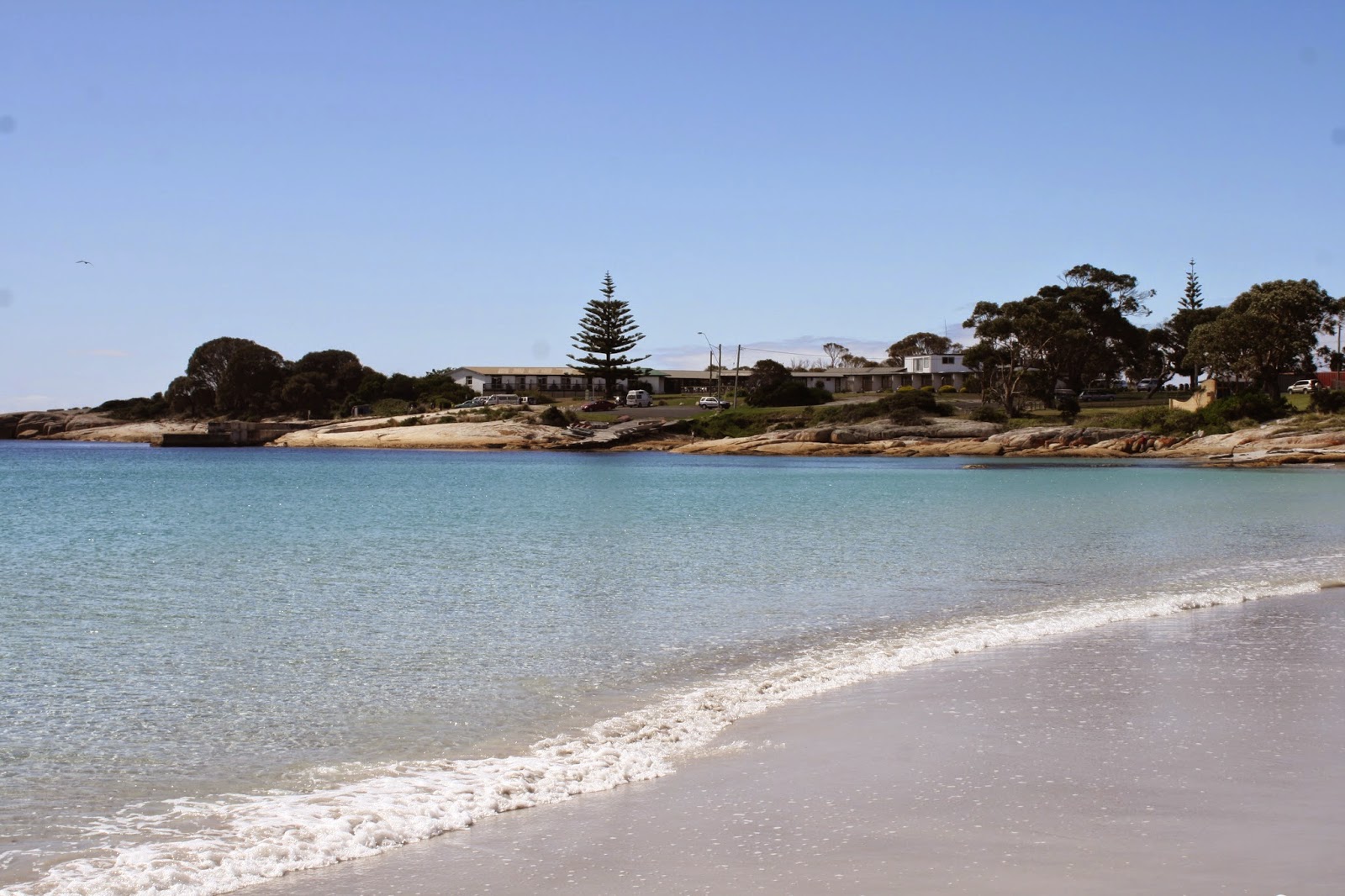 Pegamos a estrada novamente passando por St Helens pois iríamos descer a costa leste que é a parte de praias. Mais 1h30 e estávamos em outro lugar paradísiaco, a cidade de Bicheno. O mais legal é que além da praia ser linda ela tem pinguins, isso mesmo, pinguins! Eles saem de manhã cedinho e voltam a noite por isso recomendo que quem venha com mais tempo passe a noite aqui para presenciar isso. Como não tínhamos esse tempo paramos só para umas fotos, comprar algo para comer e seguir viagem.