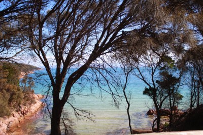 Em seguida fomos até Wineglass Bay, lá tem uma trilha que pode-se fazer até o topo e tem uma vista sensacional. Fomos só aonde dava com o carro e a vista já era bem linda, fiquei imaginando lá do topo. A próxima parada seria Coles Bay e Freycinet mas acabamos nos perdendo pois o 4G da Vodafone não funcionava aqui na Tasmânia e não alugamos GPS. Entramos um pouco no parque – que por sinal tem que pagar a entrada – e saímos sem achar nenhum dos dois lugares que queríamos. Vi uma praia escondidinha muito linda em Freycinet e foi só.