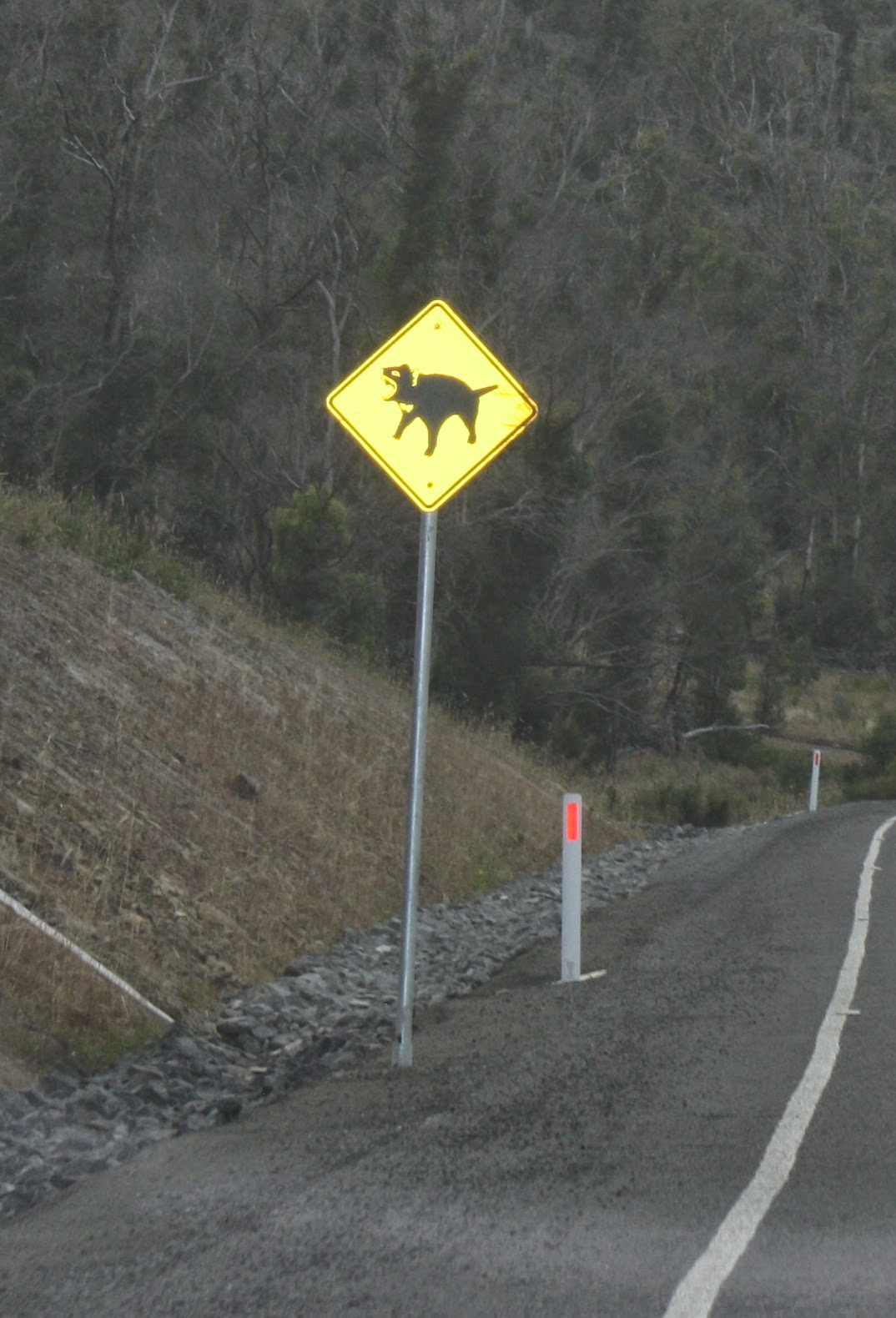 No caminho para o nosso destino final, Launceston, por já ser fim do dia começamos a ver vários bichinhos – dessa vez vivos para minha alegria – na beira da estrada. Vimos porco espinho, uns outros que não sei o que são e só passavam correndo e muitos, tipo uns 50 ou até mais wallabies cruzando a estrada ou simplesmente se alimentado na beira dela. Muito lindo!