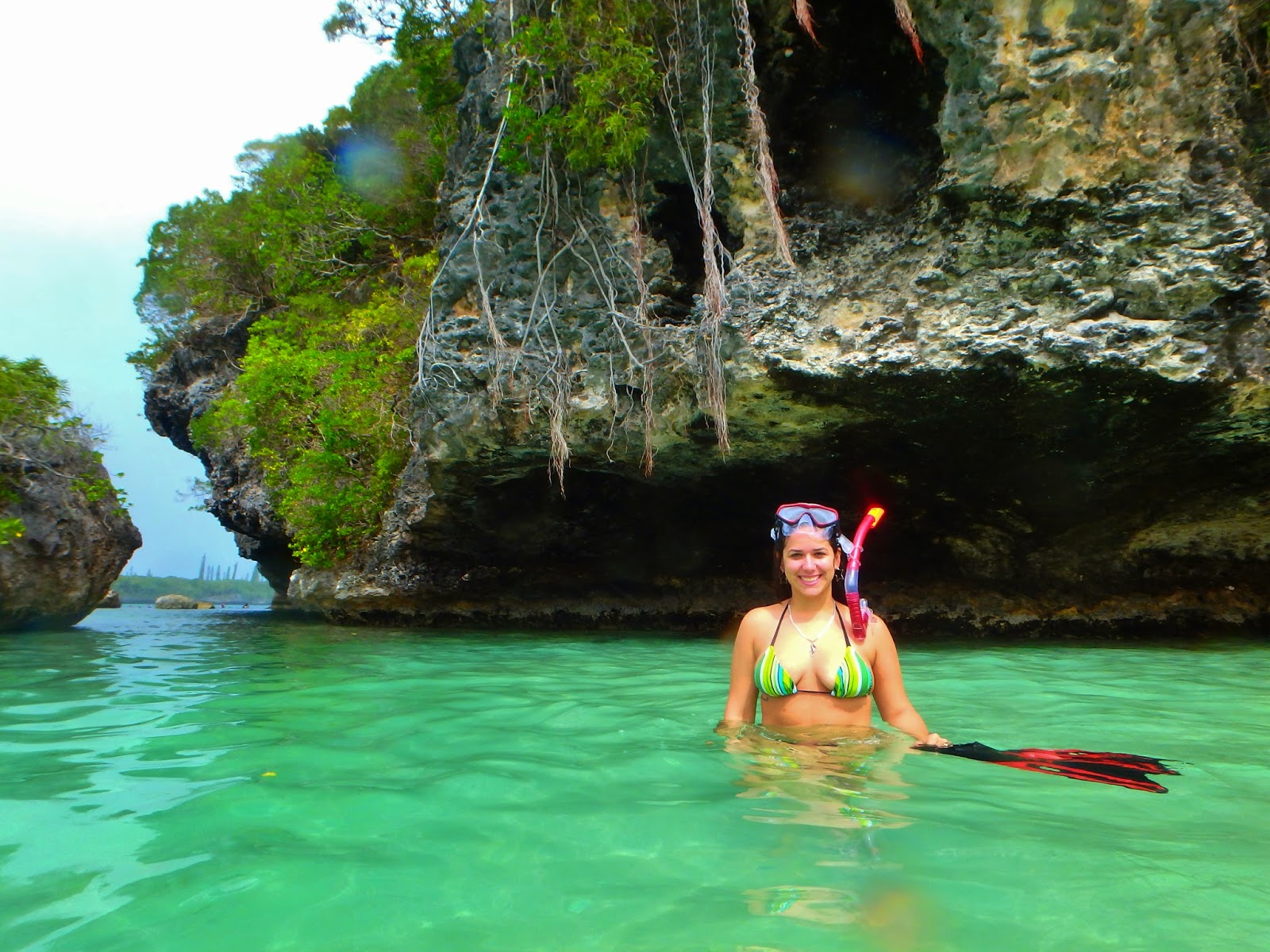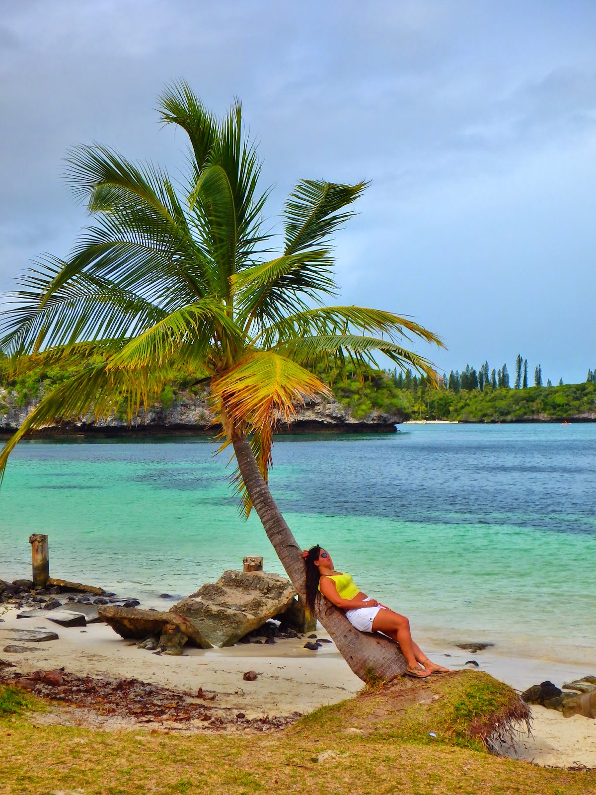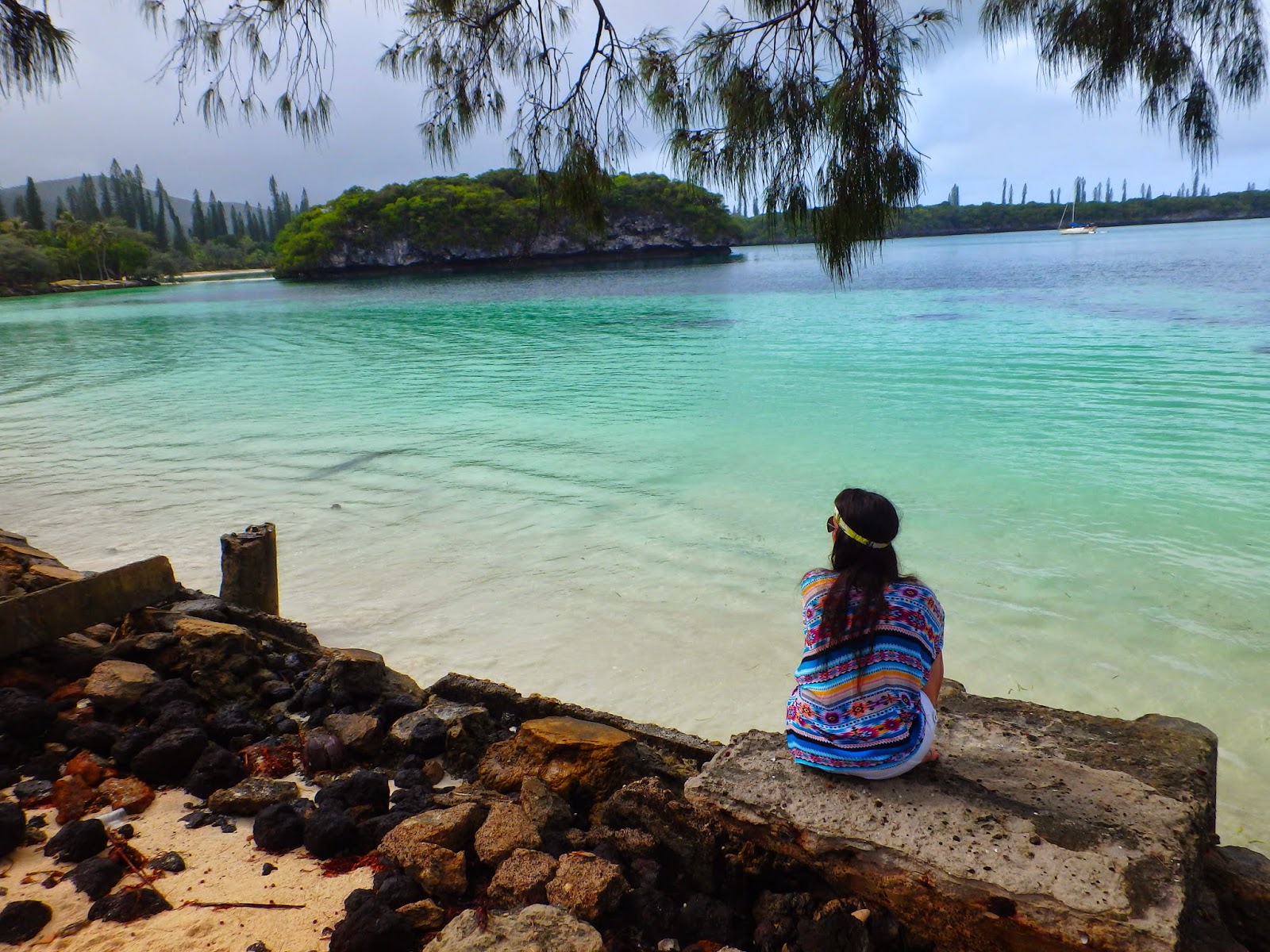 Passamos em uma baía mais linda que a outra com o mar super cristalino e azul, lindo demais! O tempo ficou meio instável, sol, chuva, nublado o dia todo mas mesmo assim deu para ver a beleza de Isle of Pines.