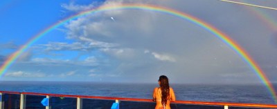 Enfim chegou o dia de embarcar no Carnival Spirit, malas prontas, férias reservadas e cabrum …. cai uma chuva torrencial em Sydney!!! Por conta da chuva e vento, o navio não conseguiu atracar no porto e tivemos que esperar mais um dia, com isso infelizmente perdemos de conhecer Mare e o cruzeiro passou de 8 para 7 dias, mas tudo bem. Finalmente no dia seguinte, ainda com o dia meio feio, embarcamos no nosso primeiro – de muitos – cruzeiro. Fiquei impressionada com a recepção dos funcionários, todo mundo muito simpático, sorrindo e feliz, logo no começo já me senti super a vontade.