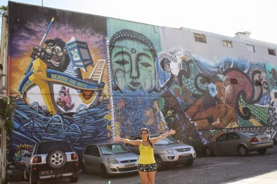 No caminho vimos street art, super legal, eu adoro e aproveitamos para comprar uma lembrancinha também na Maritime Station. Escolhemos uma carranca linda de madeira mas fiquei apreensiva se entraria na Austrália pois eles são super rígidos. Como a madeira vinha com certificado – leia-se um papel impresso escrito que era certificada – resolvemos arriscar e deu certo.