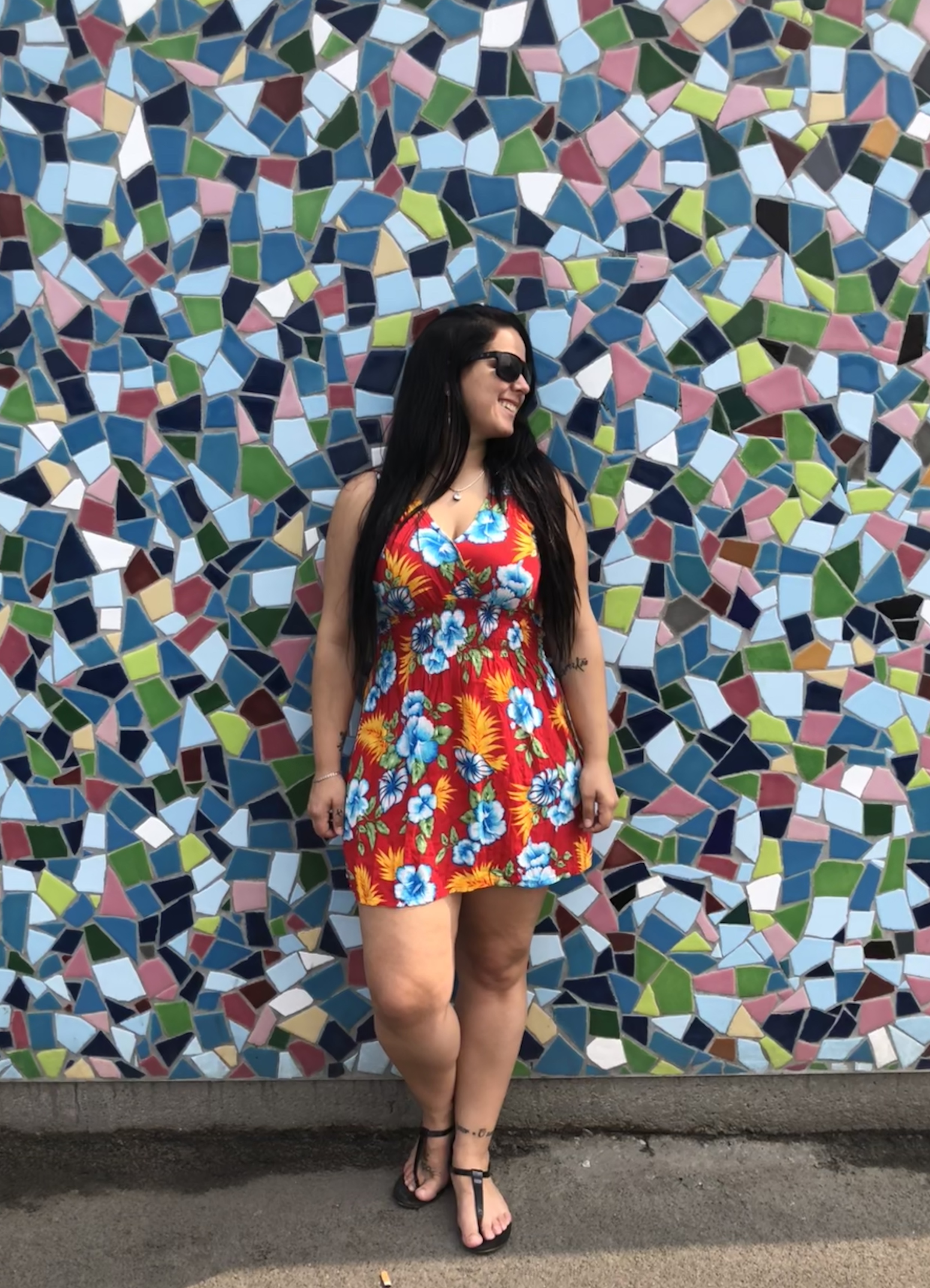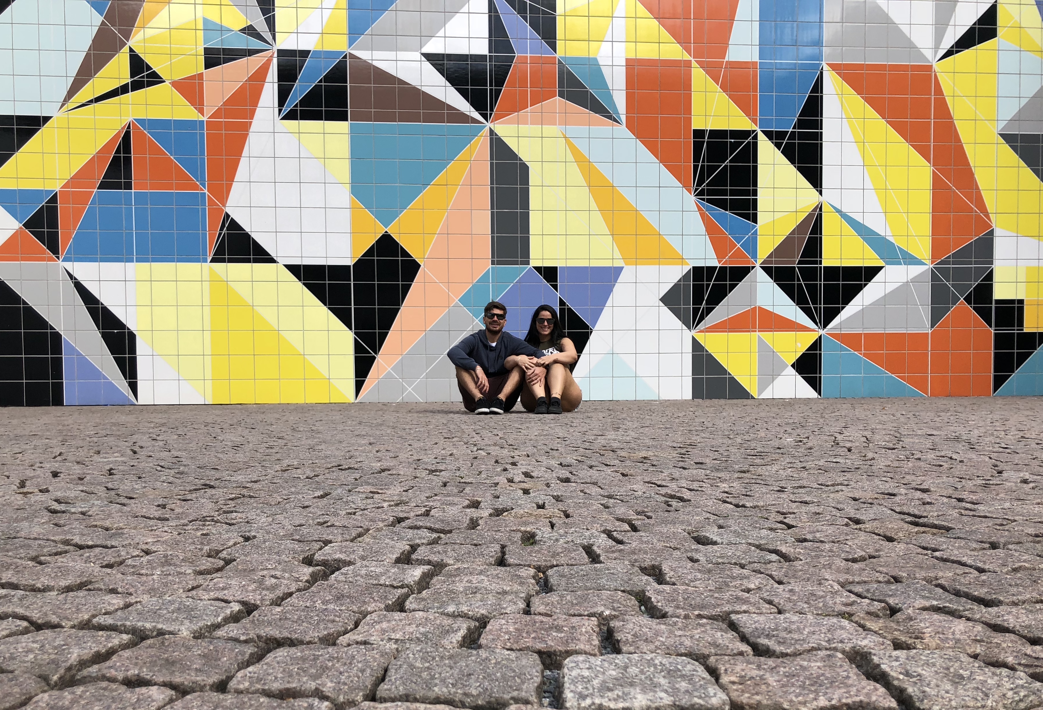 Depois que ela saiu para trabalhar fomos dar uma voltinha na Altstadt para comprar lembrancinhas e depois caminhar na beira do Rio Reno. Passamos por uma parte que fica sempre uma galera sentada, tomando umas e vendo o sol se por. Tirei foto com os azulejinhos coloridos porque achei lindo demais.