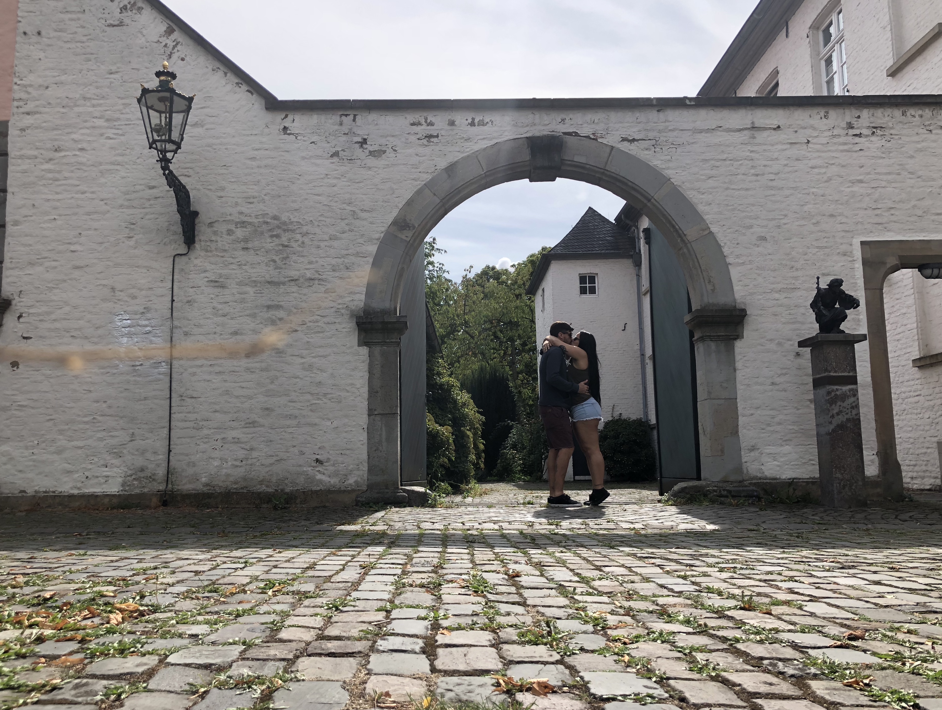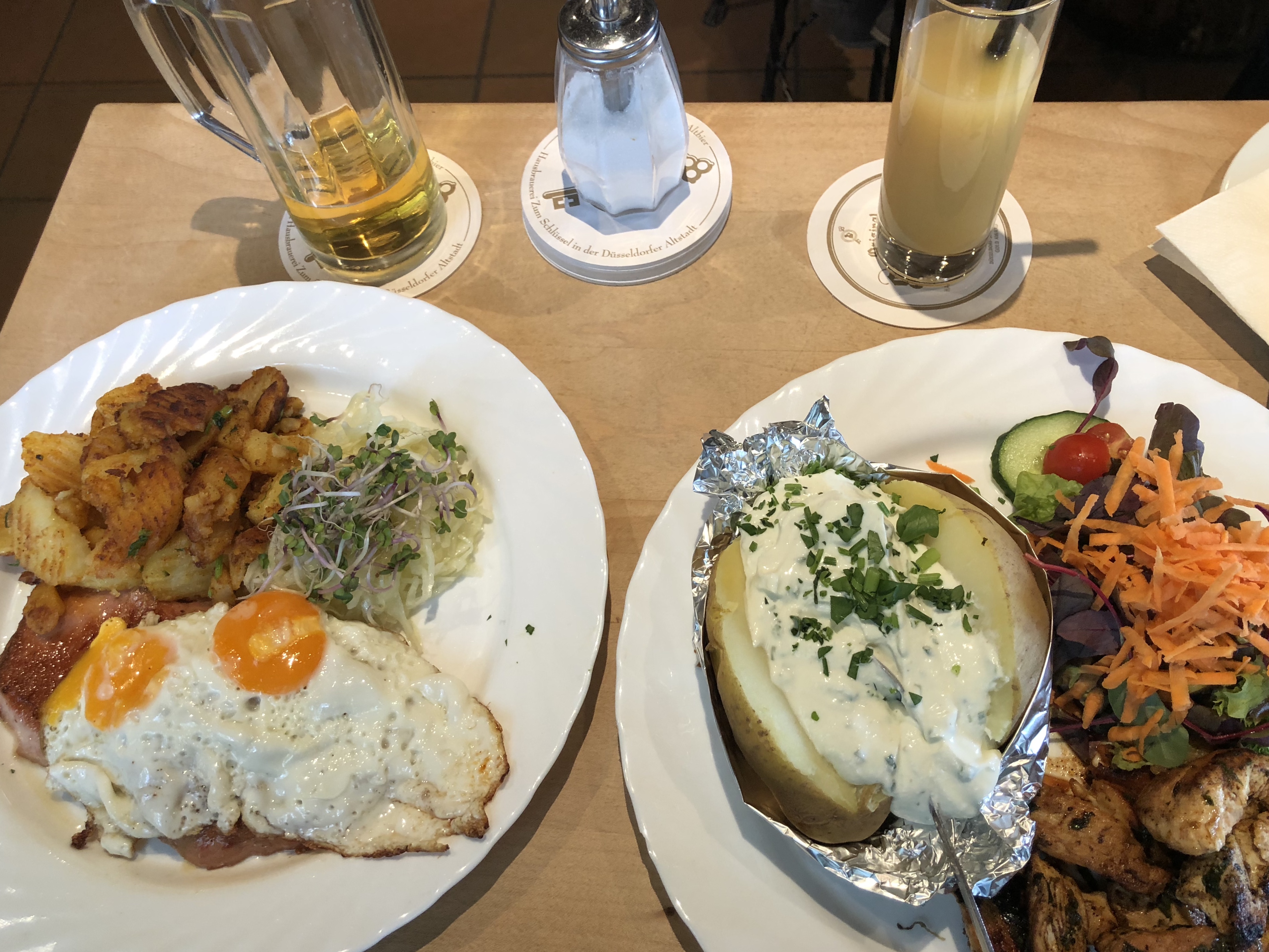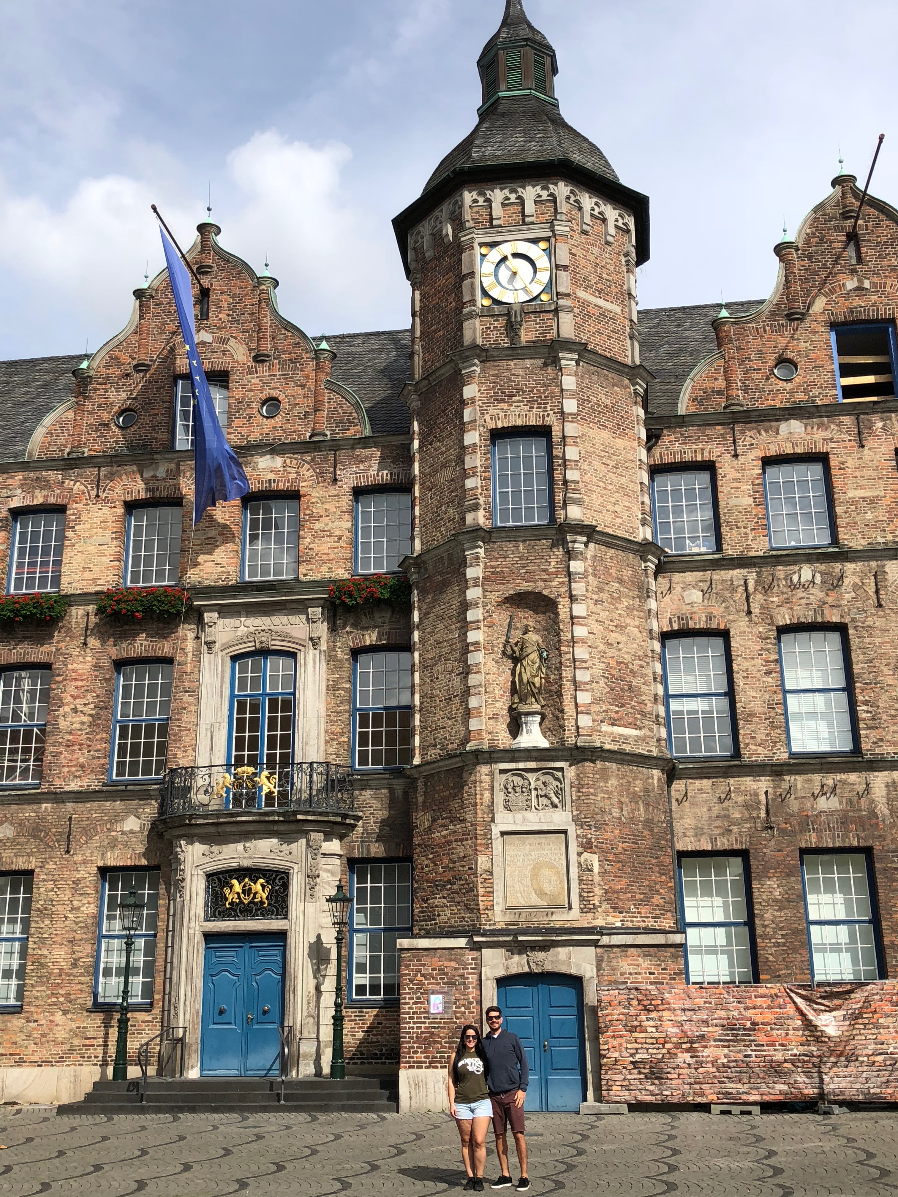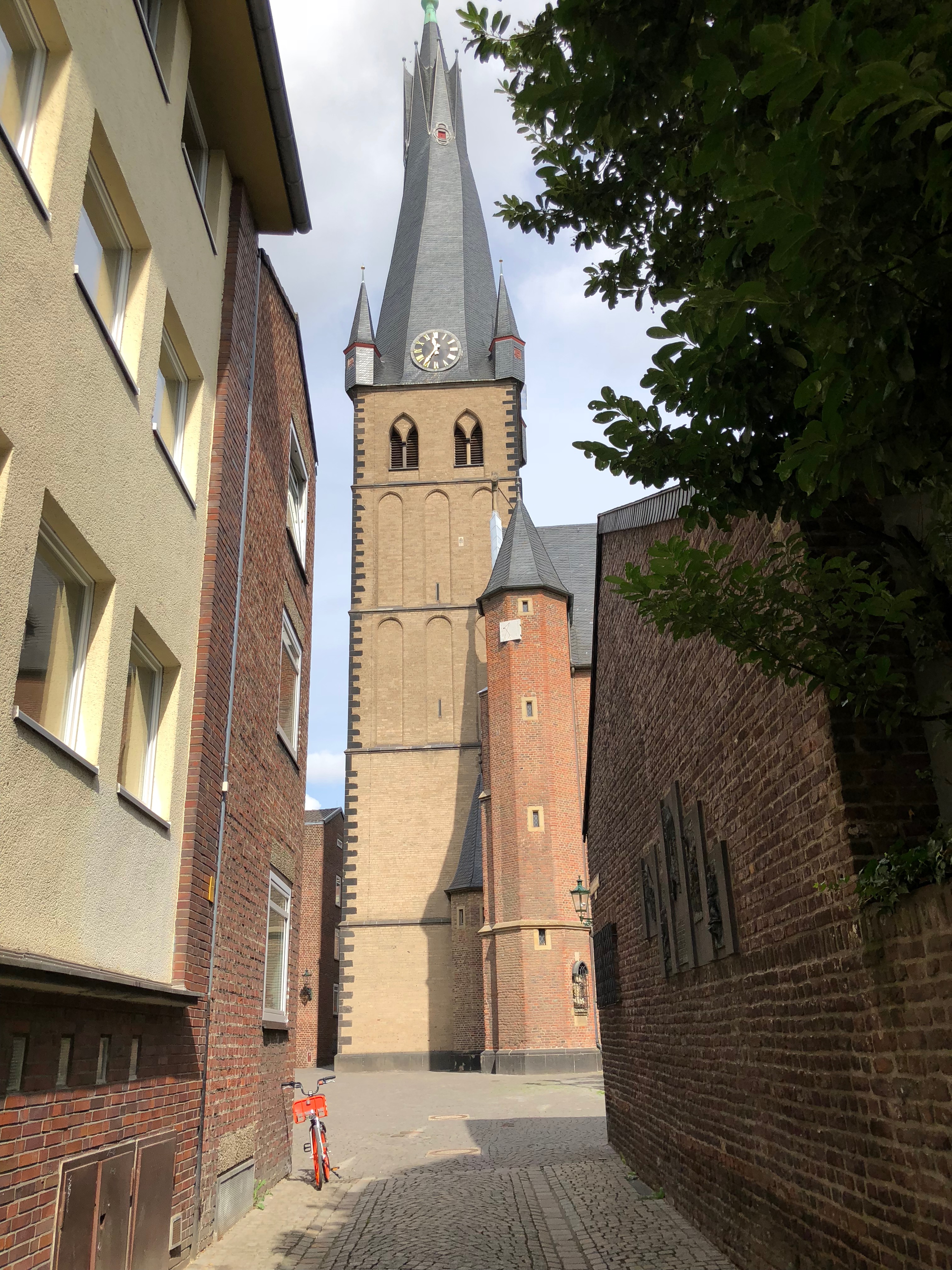 Eu adorei essa pracinha, tanta coisa para tirar foto, cada canto dava uma foto. Visitamos a igreja católica St Suitbertus, demos uma volta por ali e fomos comer num restaurante chamado Galerie Burghof (€33.70 casal) no Altbiergarten.