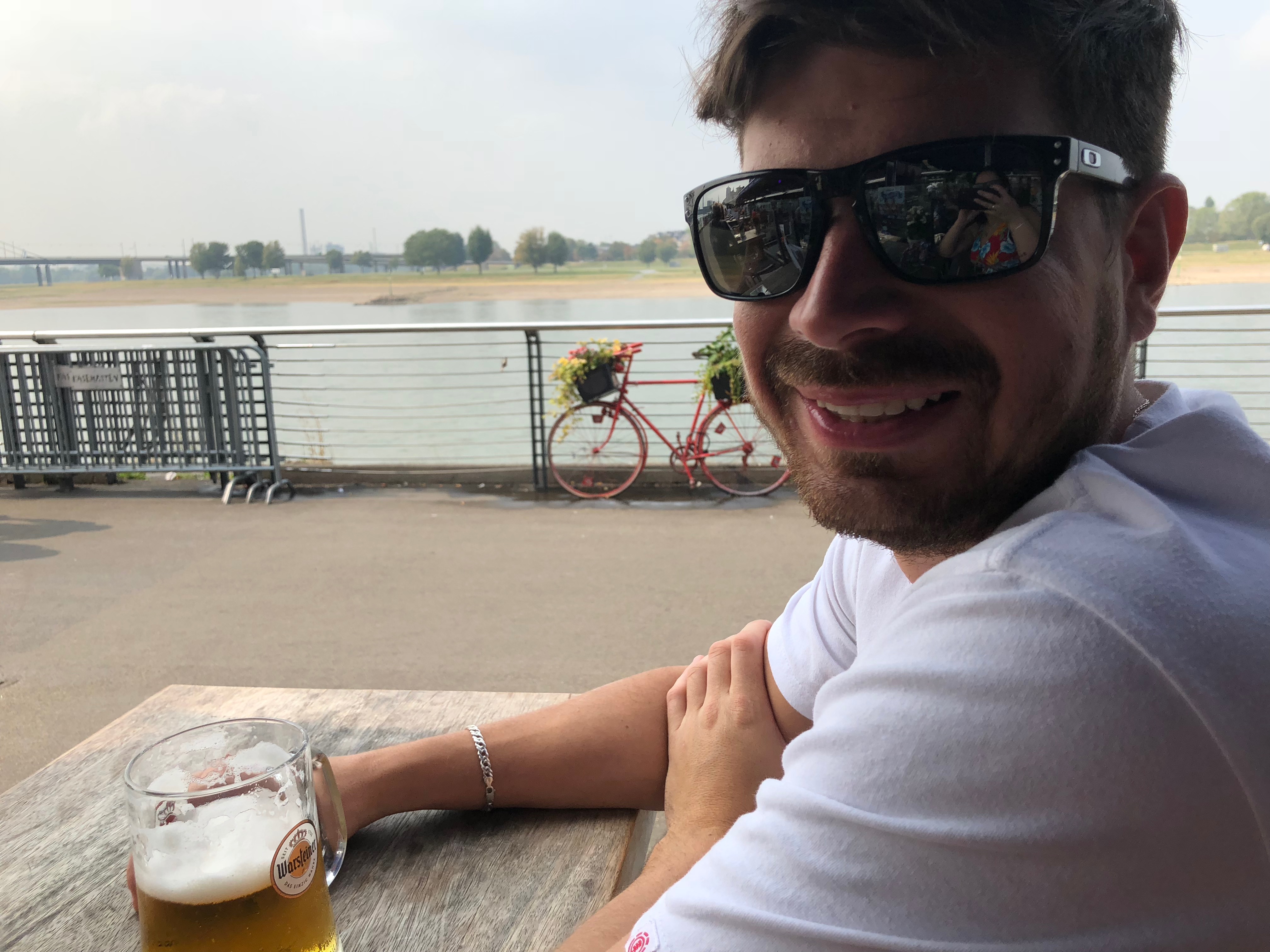 Acordamos e fomos nós todos para um festival de música na beira do Rio Reno, em Golzheim. Levamos um vinho e ficamos por ali curtindo, estava rolando uma feirinha também. Comemos nas barraquinhas e fim do dia voltamos para casa, eu e minha irmã caminhando e os meninos com a Lele de bike. Passeio bem gostoso pela beira do rio.