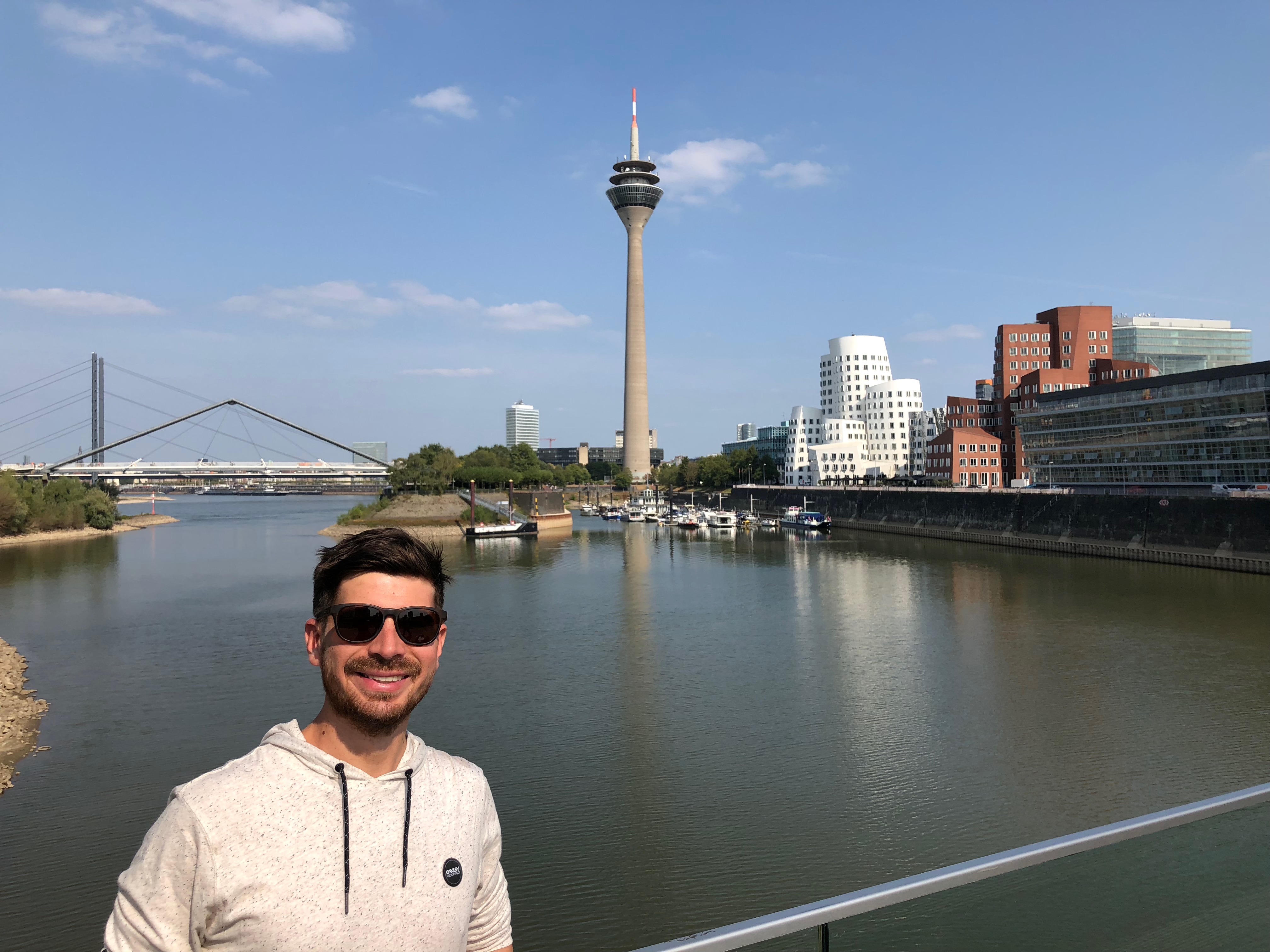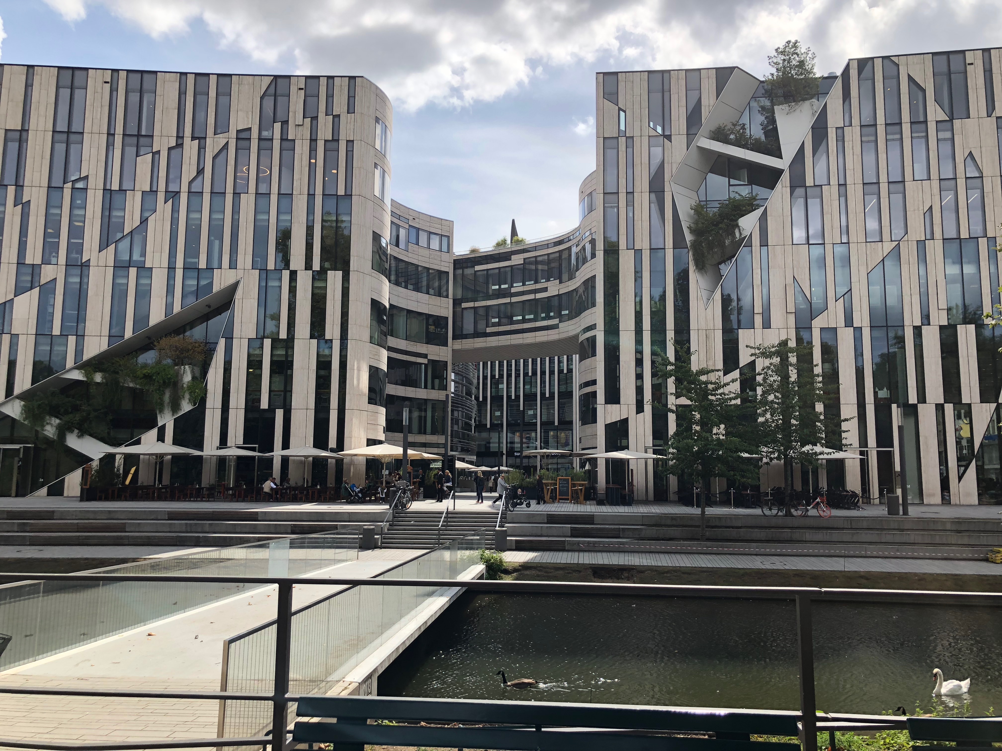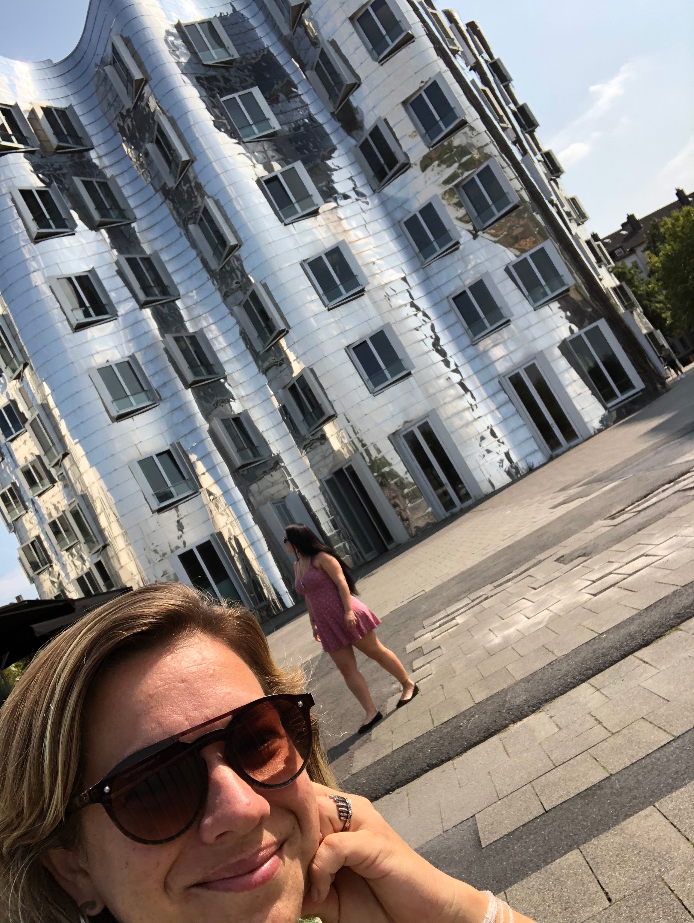 Primeiro dia, acordamos e comemos vários pãezinhos da padaria da frente da casa da minha irmã – uma delícia, amo. Fomos com a minha irmã e a Lele dar uma volta no Altstadt e paramos ali nos Gehry Buildings. Achei muito legal essa arquitetura diferente.