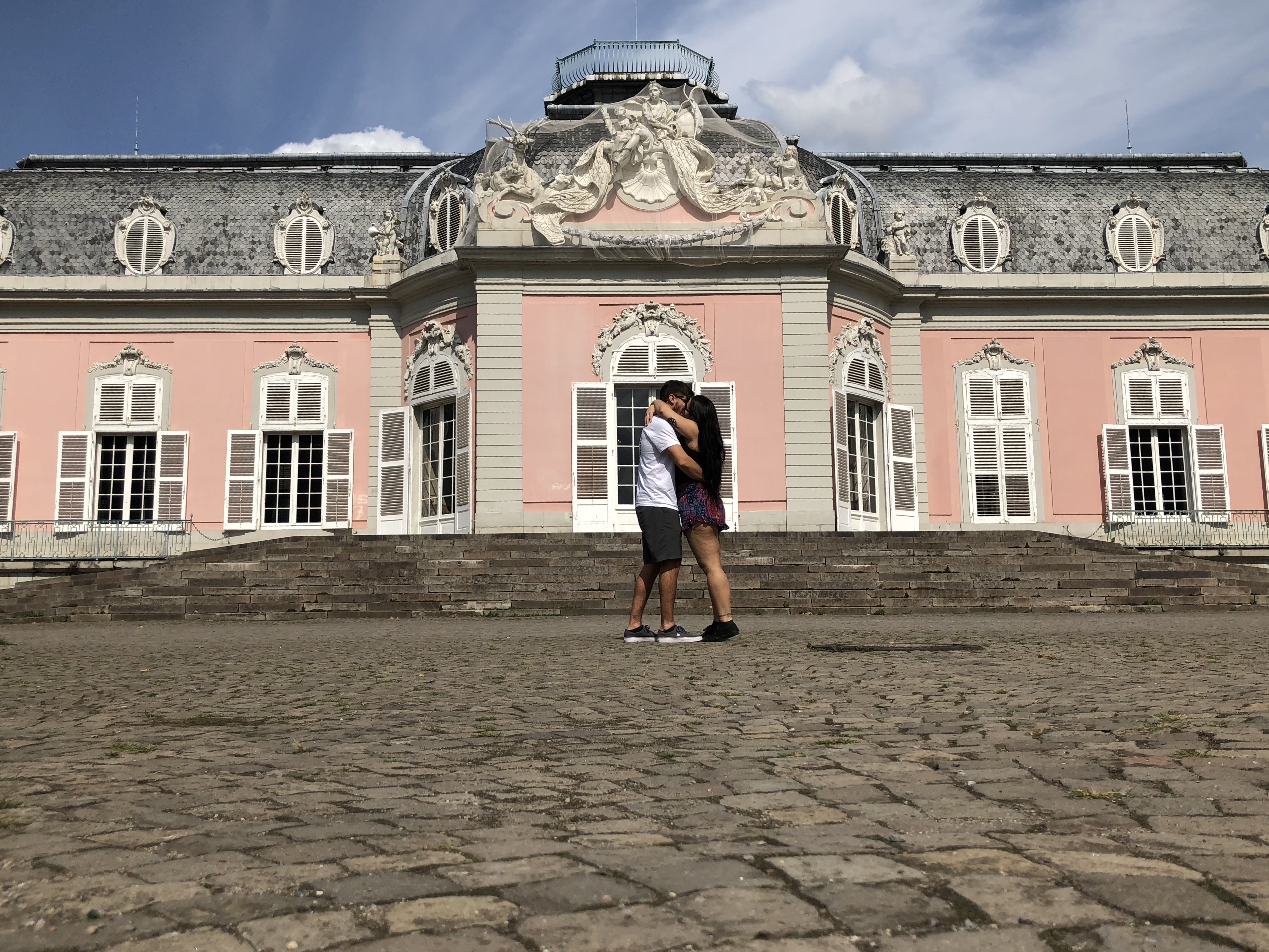 De lá pegamos outro tram por mais meia hora até o Schloss Benrath. É um antigo castelo todo rosado aberto ao público (€14 por pessoa). Decidimos não entrar e ficamos curtindo o jardim, super bonito.