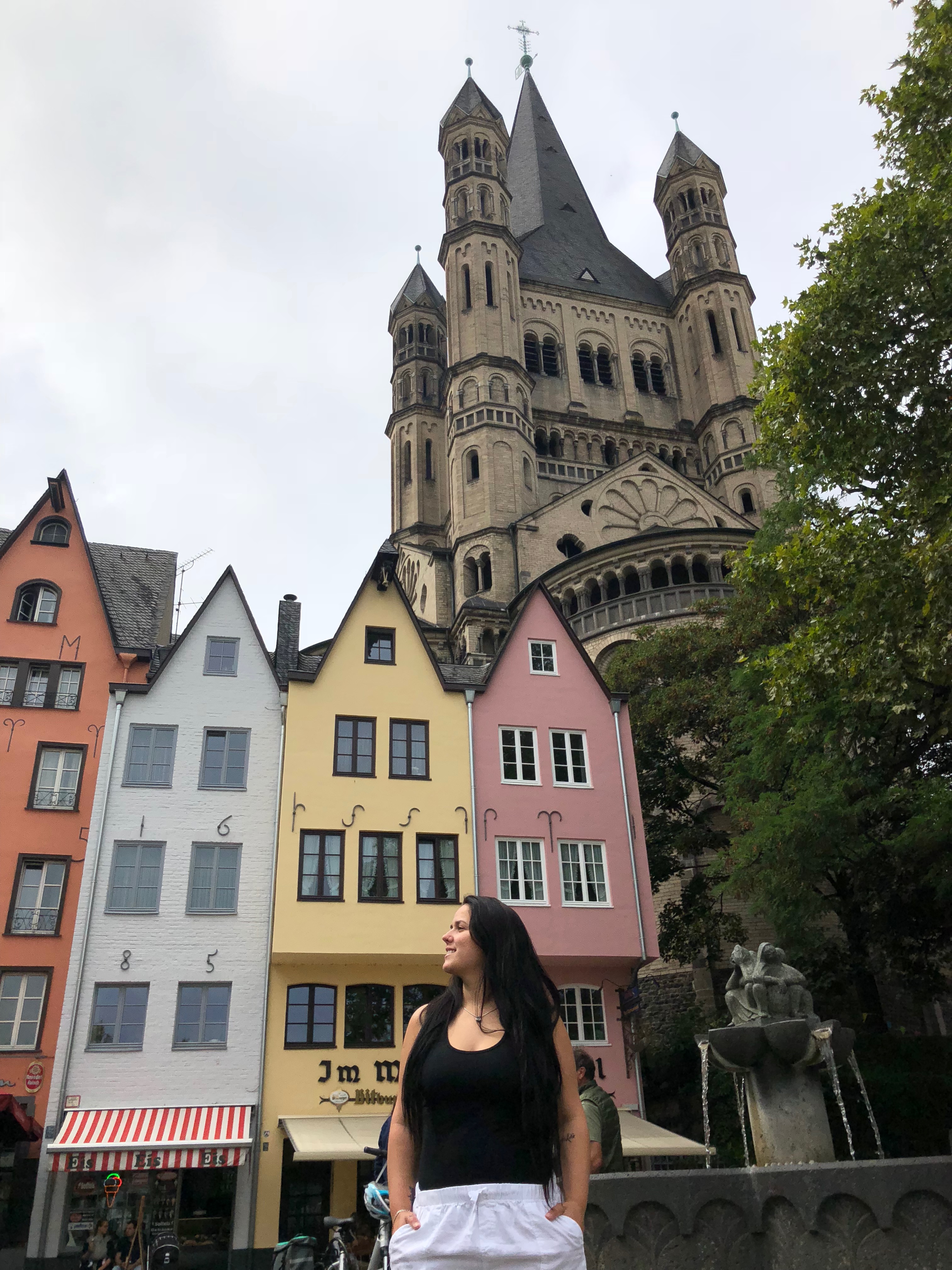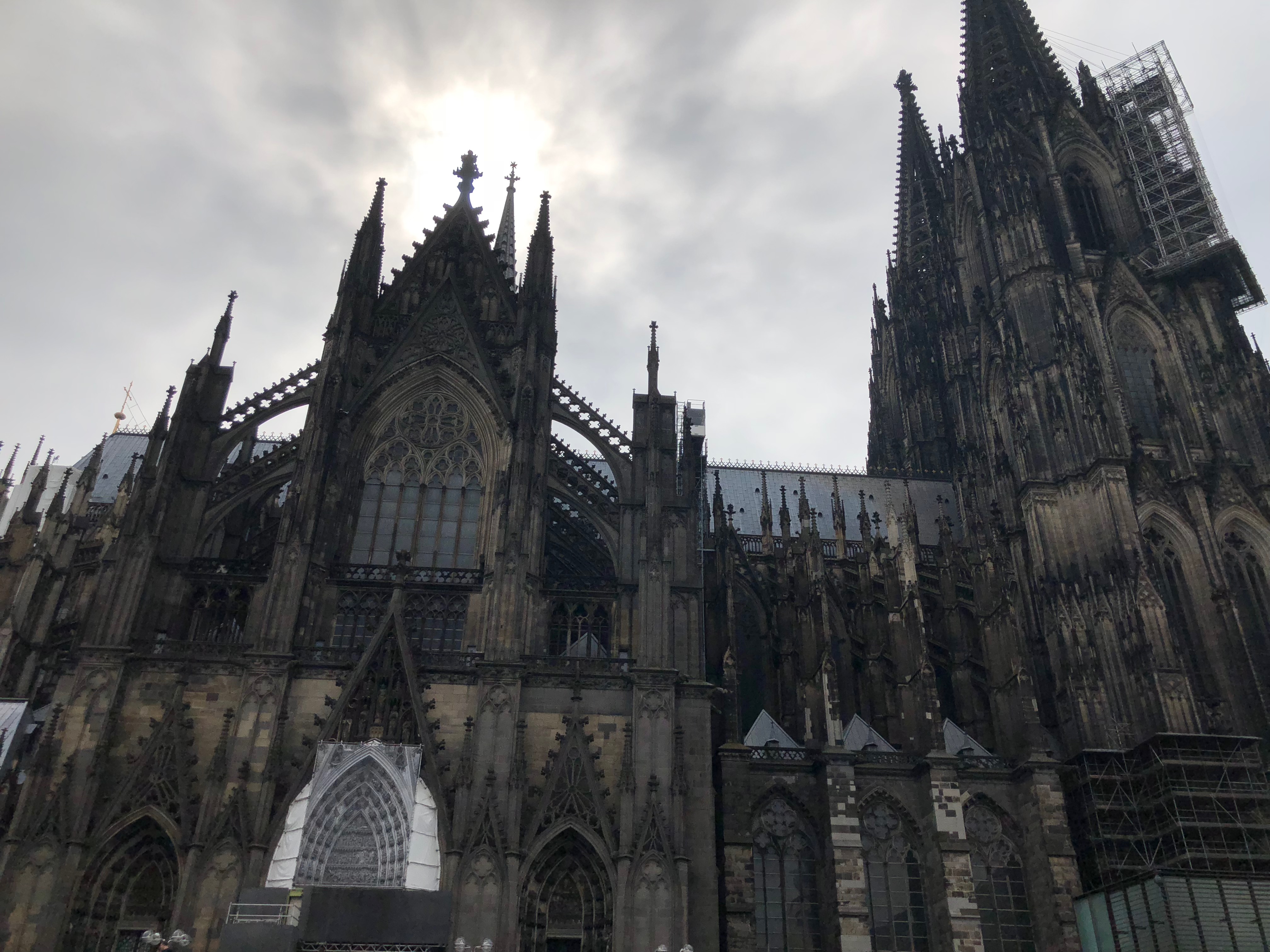 Famosa cidade vizinha de Düsseldorf, não podíamos deixar de conhecer. Acordamos e fomos para a estação central comprar o ticket porém o guichê que existia do FlixTrain não estava ali e o trem saía em 10 minutos. Tinha visto que estava €3 por pessoa então decidimos correr para pegar o trem e pagar lá dentro. Ufa, deu tempo.